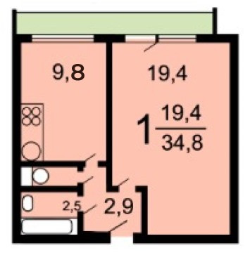 Общая площадь 34.7 м2