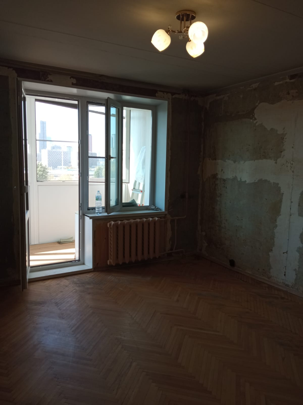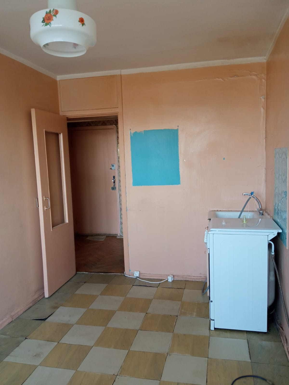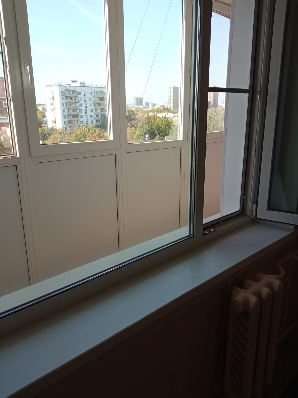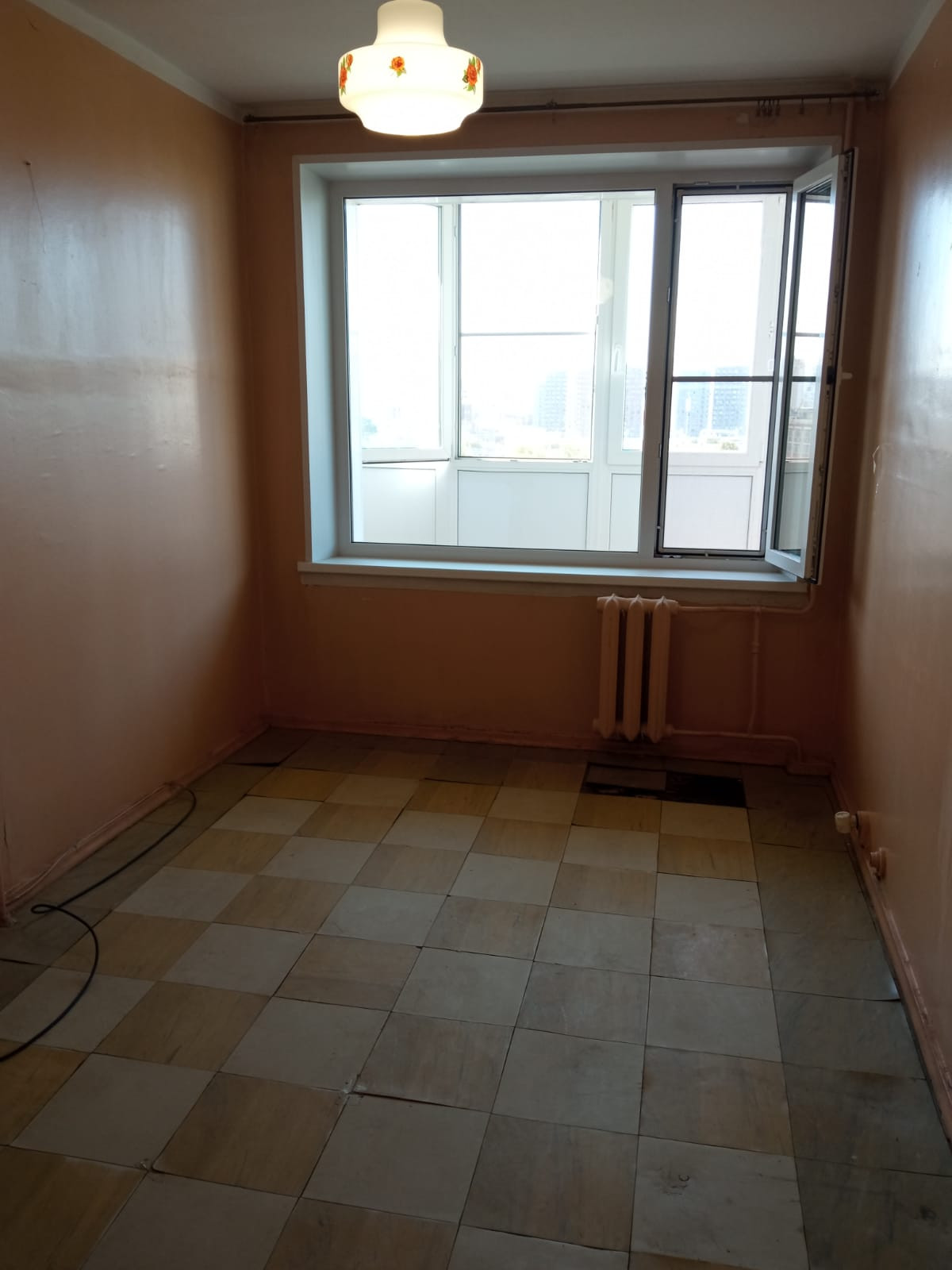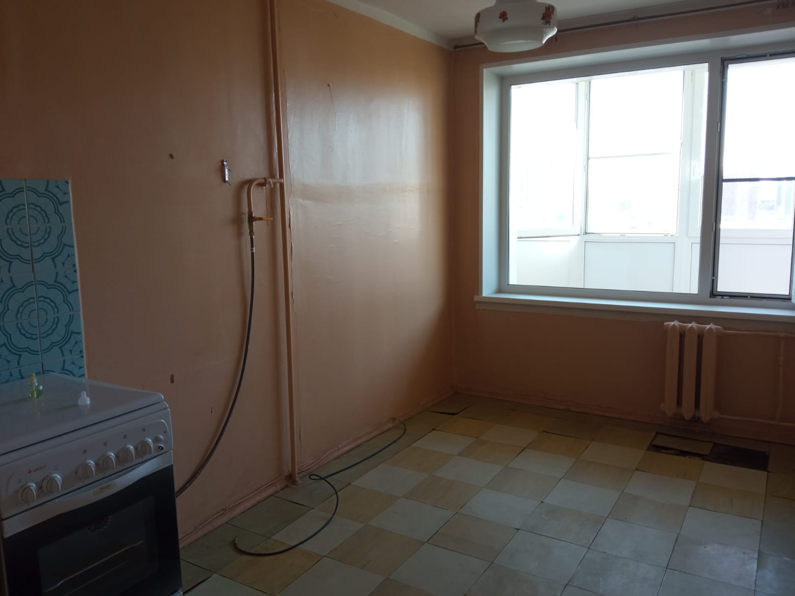 Общая площадь 34.7 м² (без лоджии). На БОЛЬШОЙ ЛОДЖИИ сделан ЕВРОремонт, заменены стеклопакеты, стоят москитные сетки. Выход на лоджию из комнаты. Кухня просторная – 9,8 м². Квартира подготовлена под ремонт. Санузел совмещен, в хорошем состоянии.