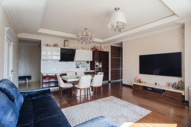 Просторная квартира, две спальни и кухня-гостиная. Высокие потолки. В квартире установлена приточно-вытяжная вентиляционная система, система кондиционирования, установлены очистительные системы для воды, бойлер. Бытовая техника Neff.  Два совмещенных санузла отделанные ониксом. Квартира полностью готова к проживанию, продажа осуществляется вместе с мебелью. В собственности больше трех лет, оперативный показ.