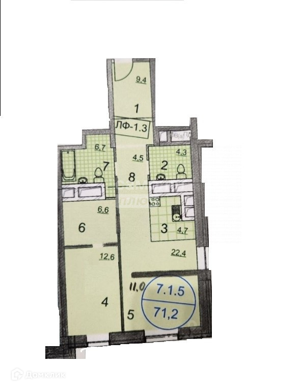 Общая площадь 72 м2