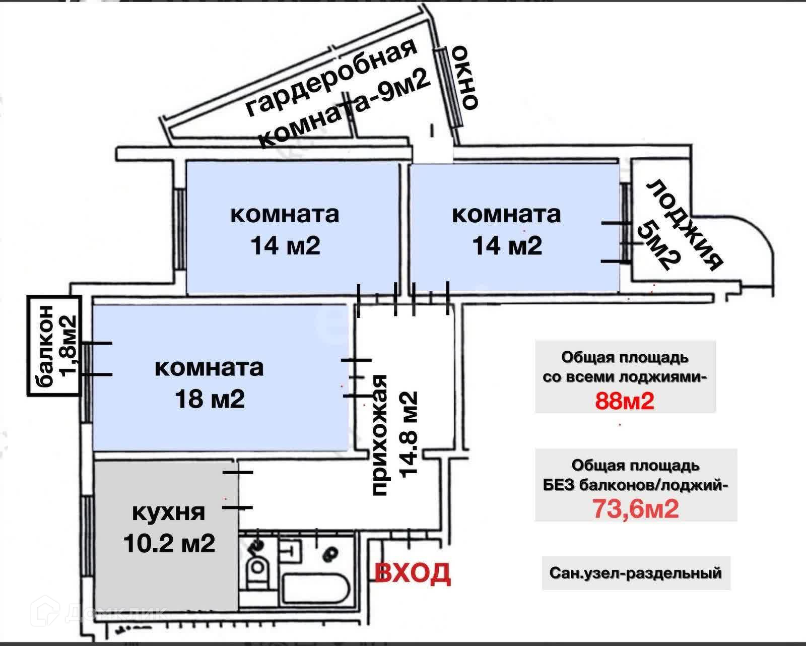 Общая площадь 88 м2