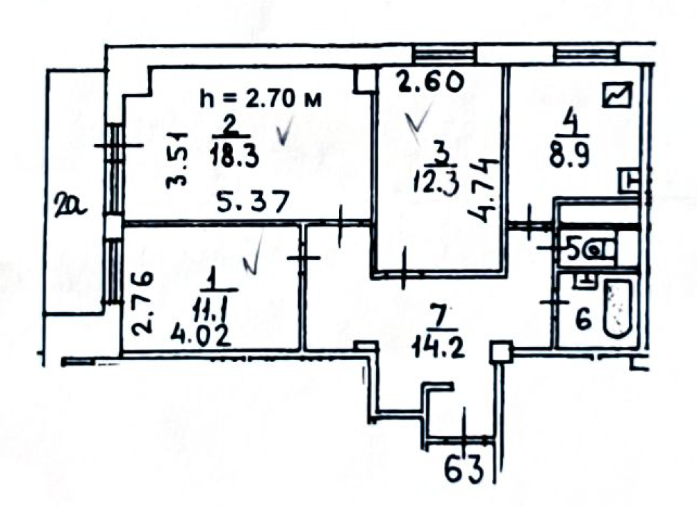 Высота потолков 2.7 м