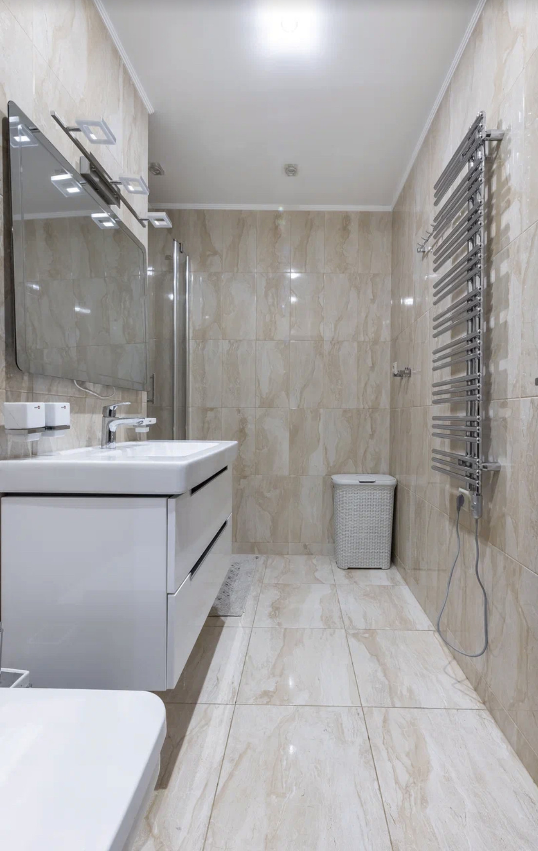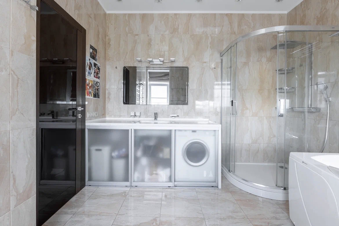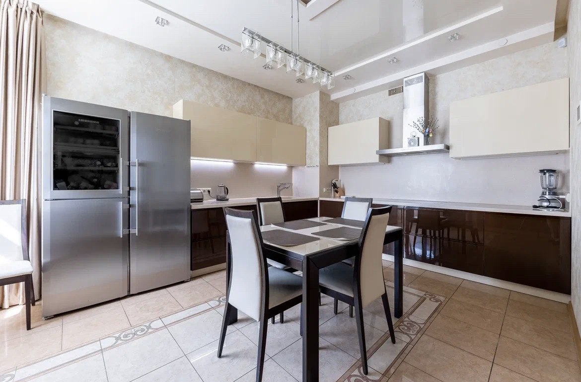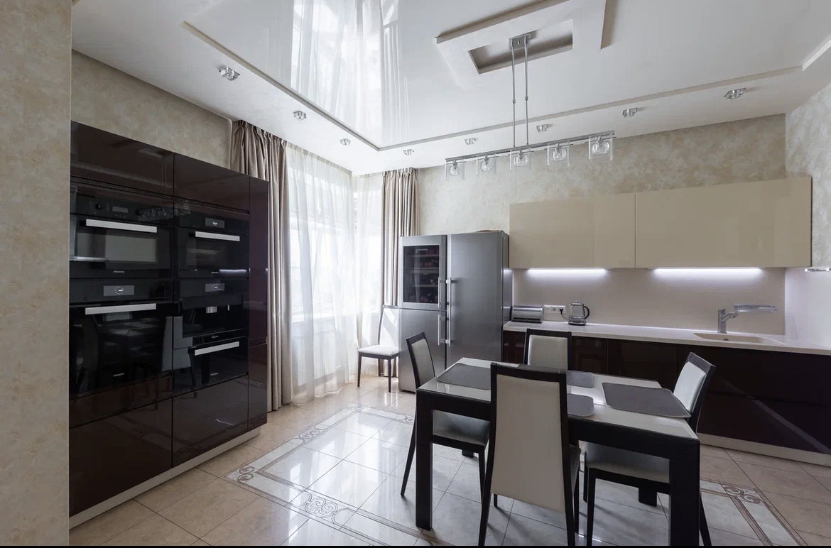 Квартира с дизайнерским ремонтом по индивидуальному проекту с использованием дорогостоящих натуральных материалов, в отделке использовались: натуральный мрамор, травертин, напольное покрытие - массив дерева. Обои Roberto Cavalli. Межкомнатные двери и шкафы Barausse SPA (Италия). Встроенная бытовая техника на кухне MIELE, Liebher, техника для стирки - Meile. В квартире установлена профессиональная музыка Denon, Fiber. Вся сантехника - Villeroy&Bosch. Мебель выполнена на заказ брендами Abici и Interlubke.