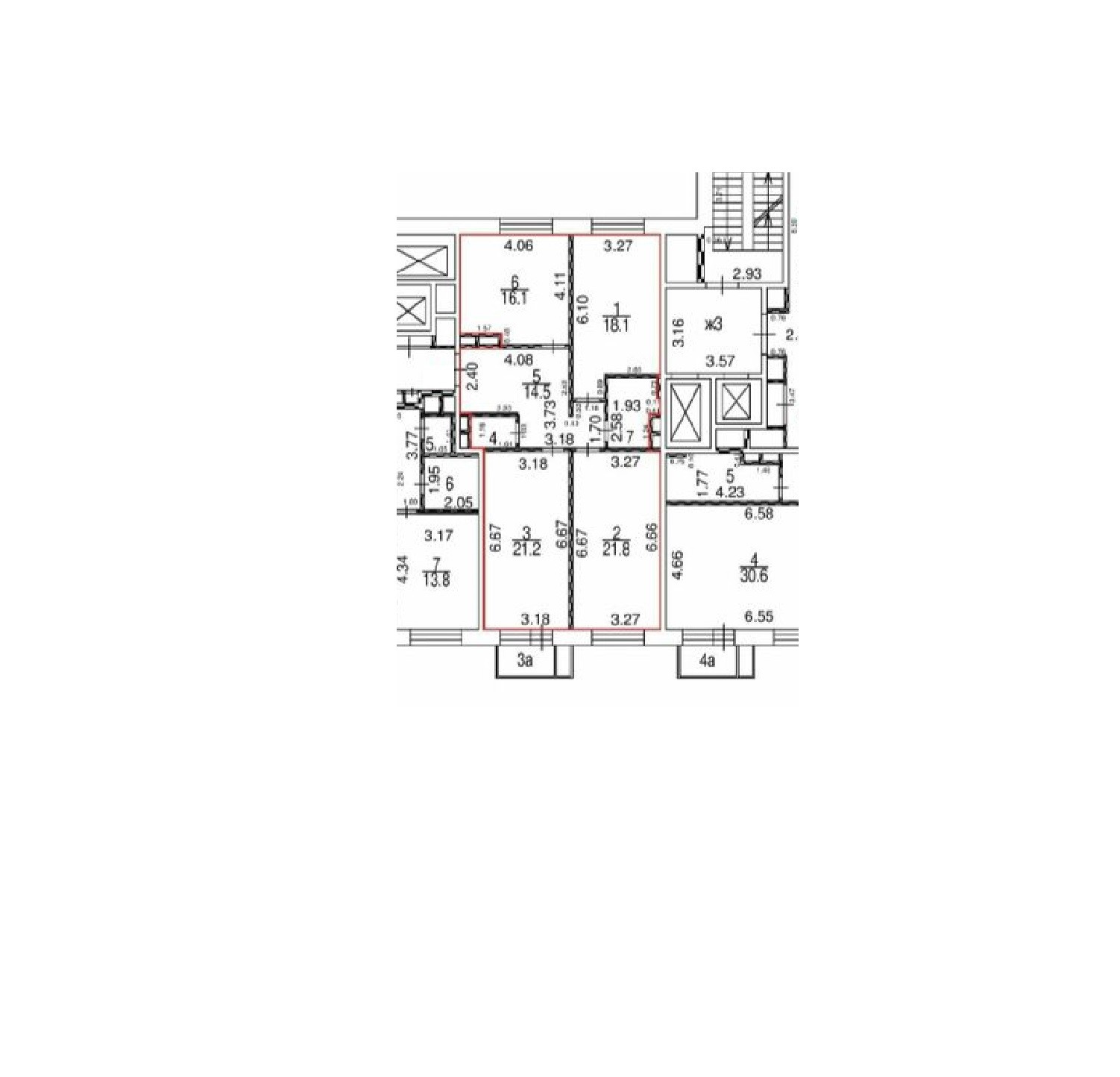 Жилая площадь 61.1 м2