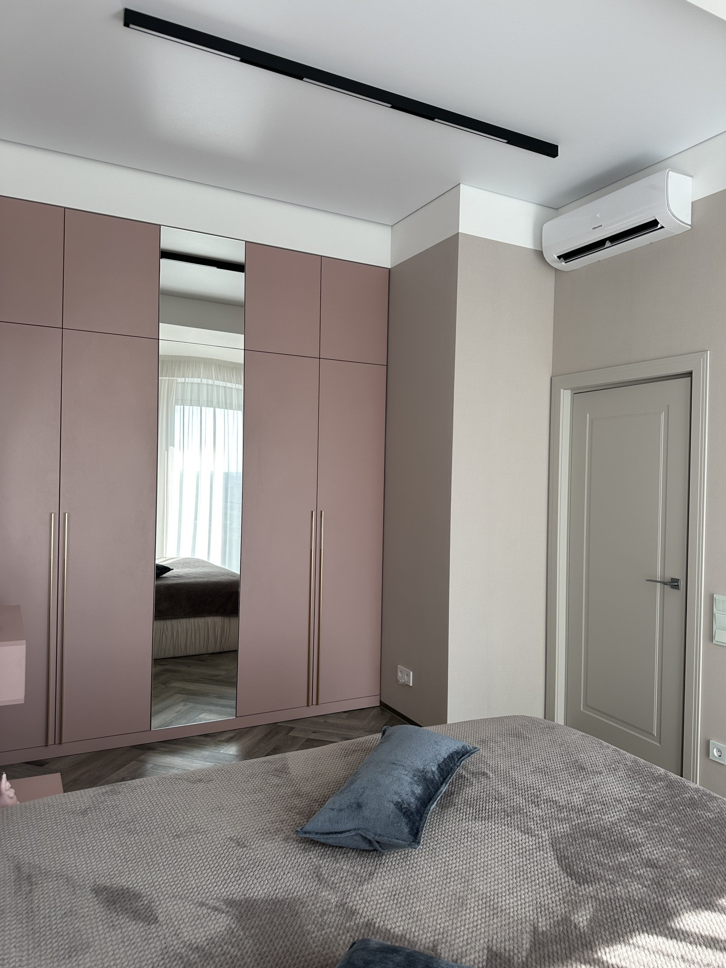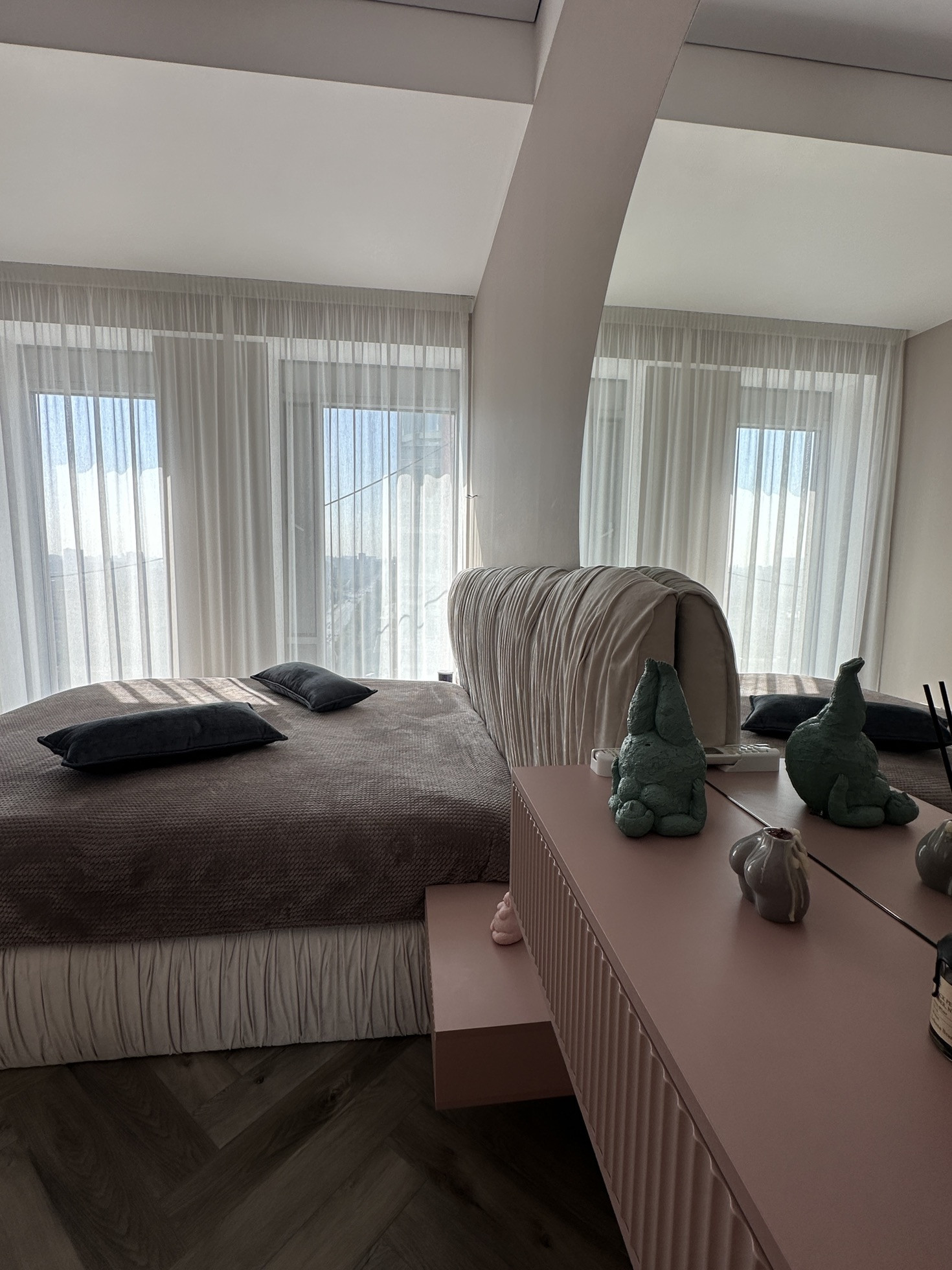В спальни два окна в пол .