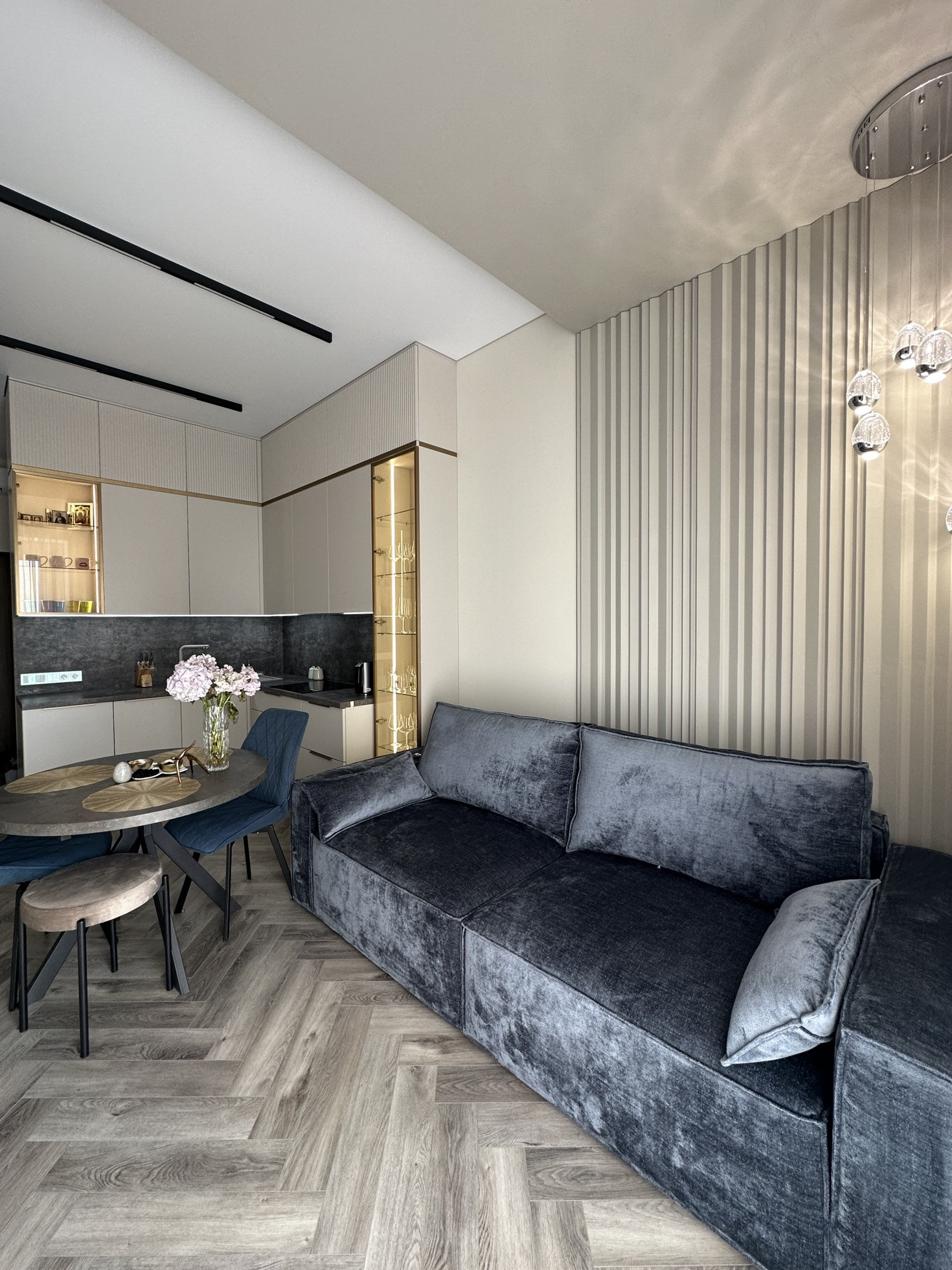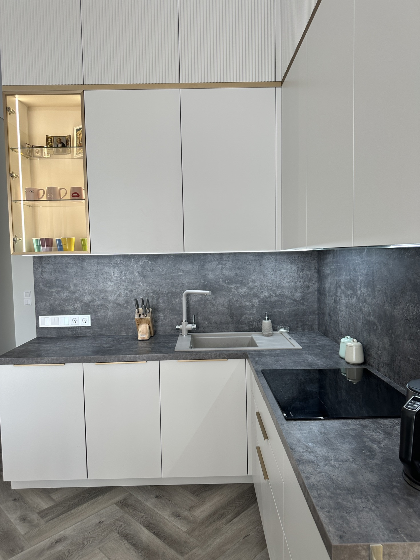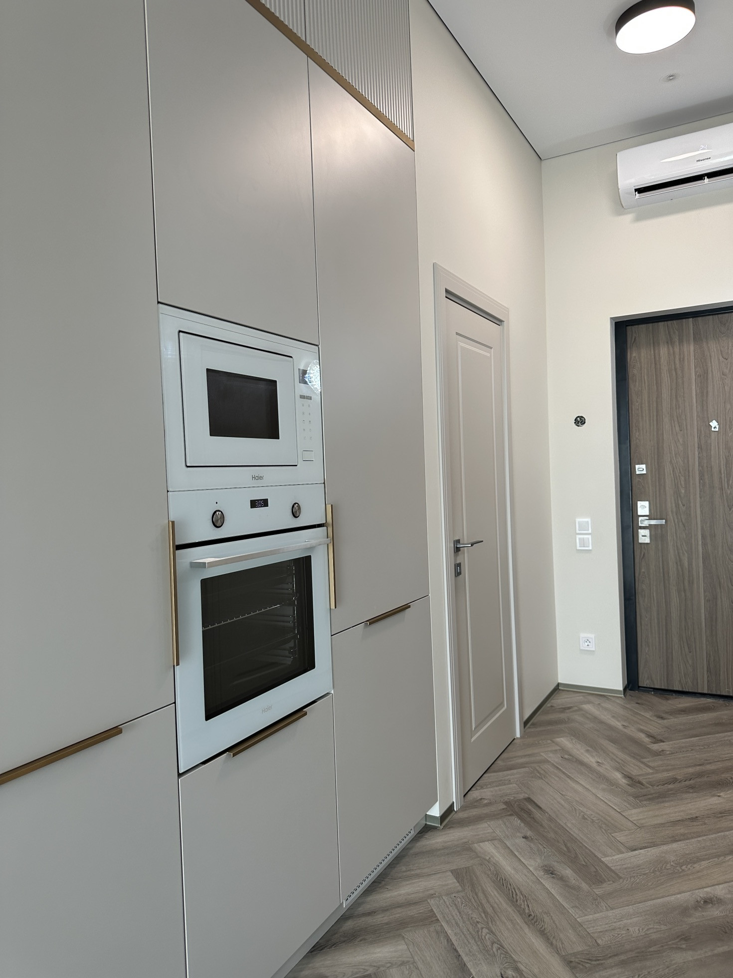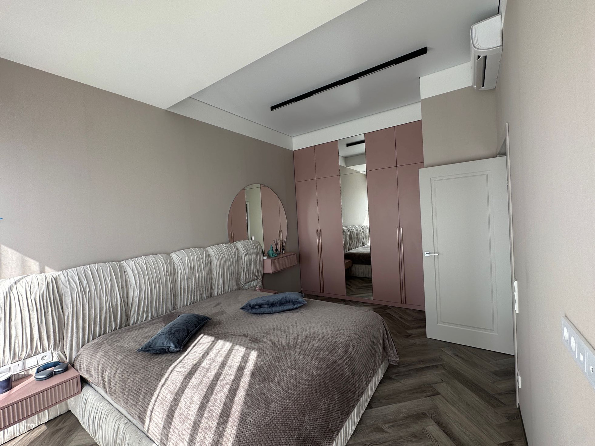 Полностью заменено отопление от застройщика, проведена новая электрика с множеством допников. Мебель заказная МДФ, эмаль.