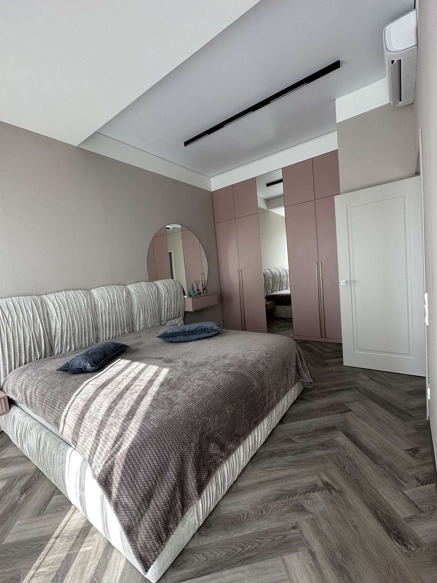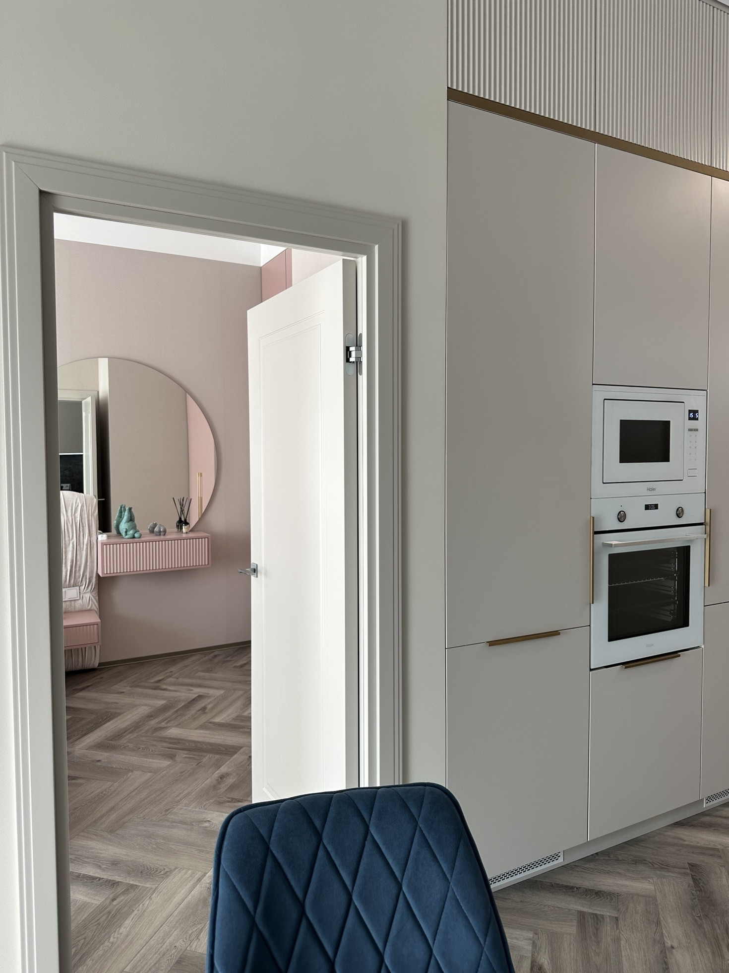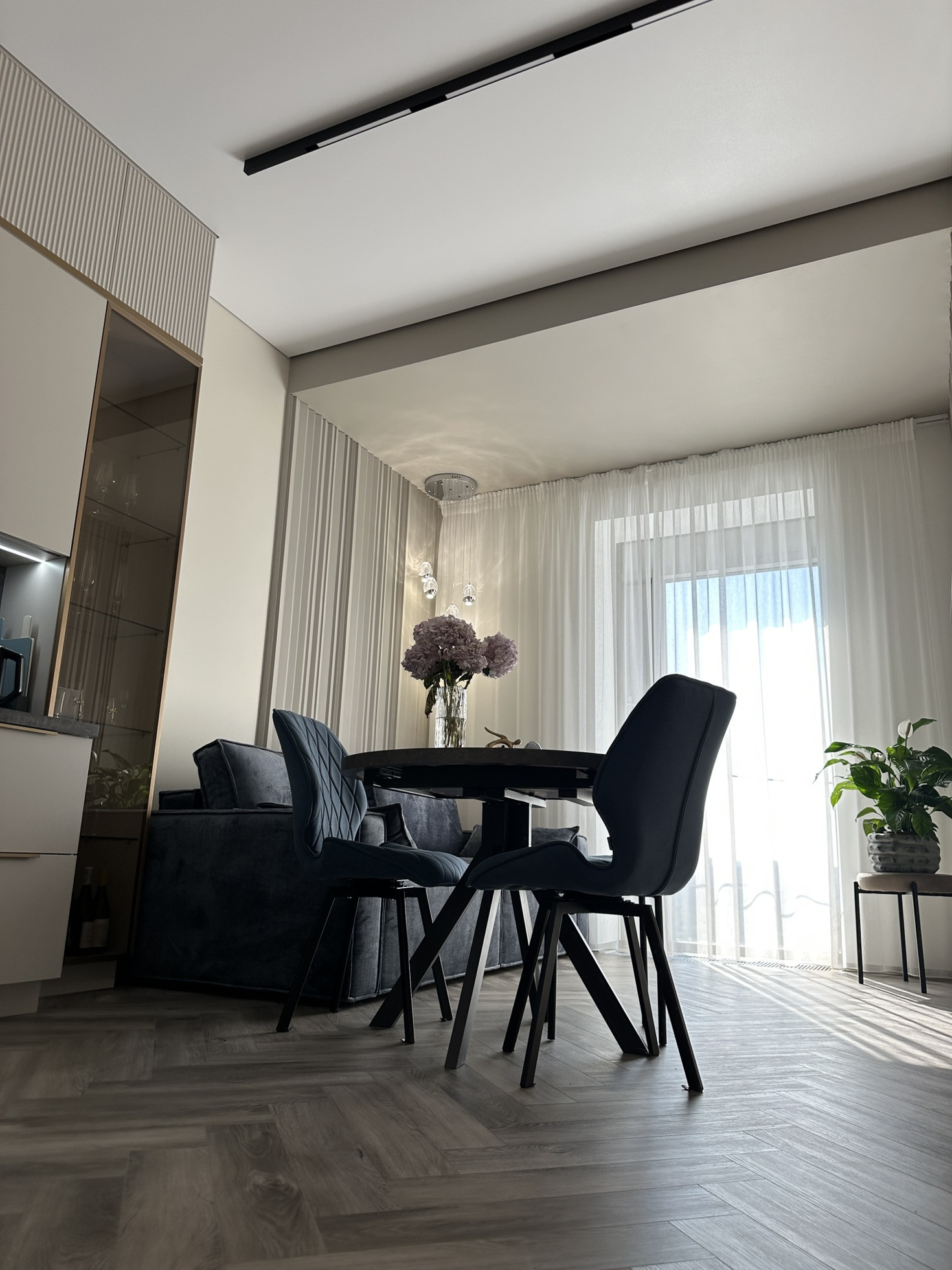 Полностью заменено отопление от застройщика, проведена новая электрика с множеством допников. Мебель заказная МДФ, эмаль.
