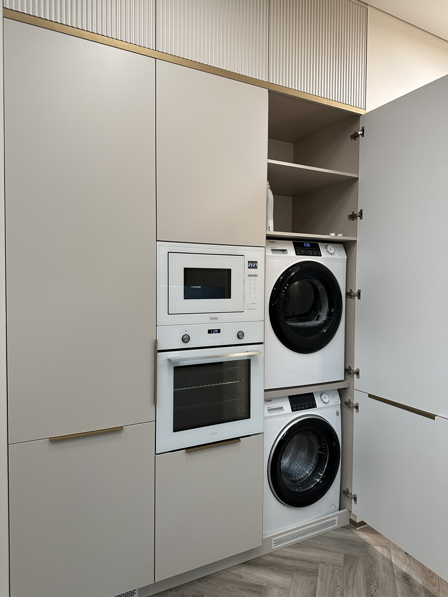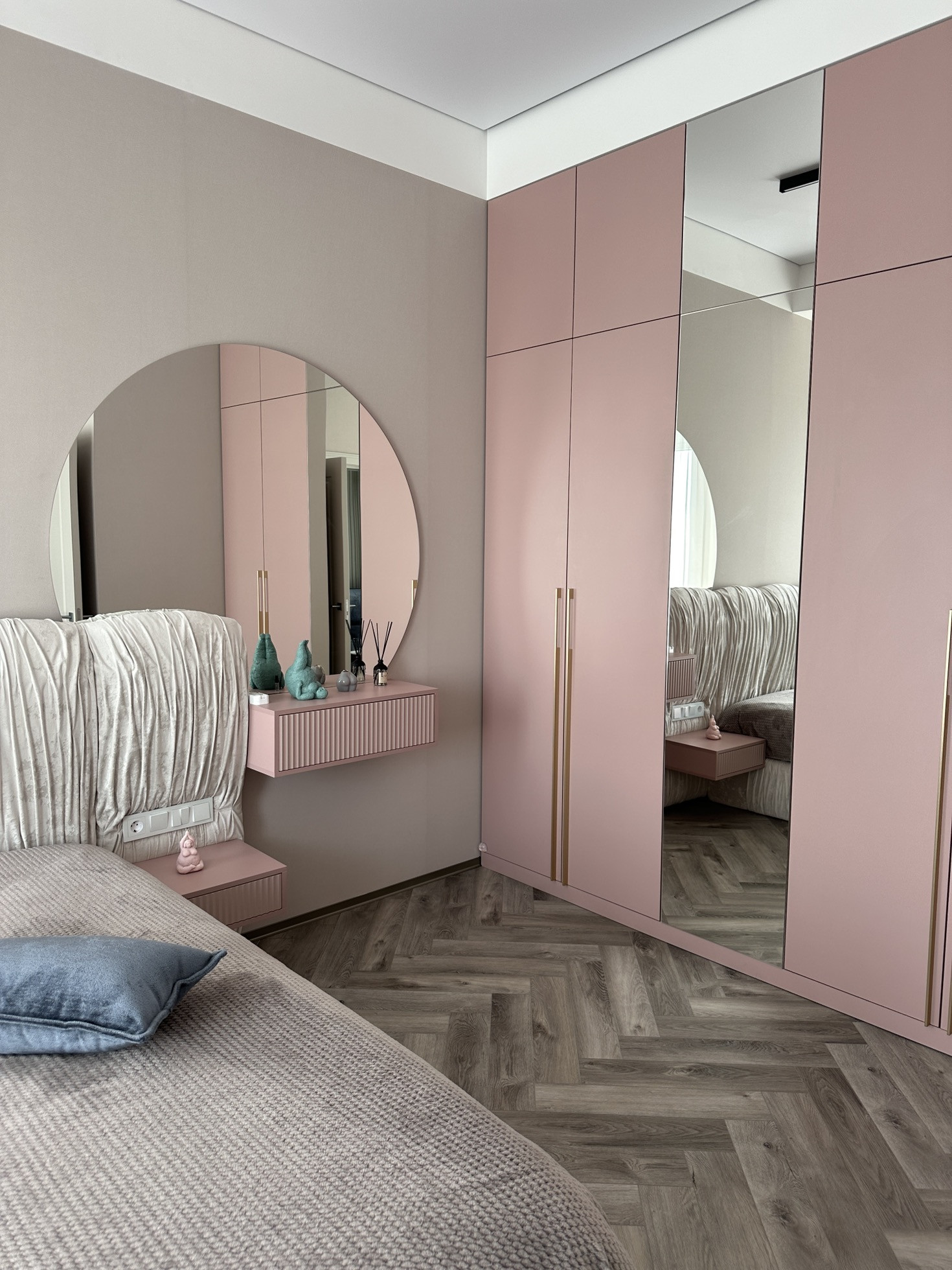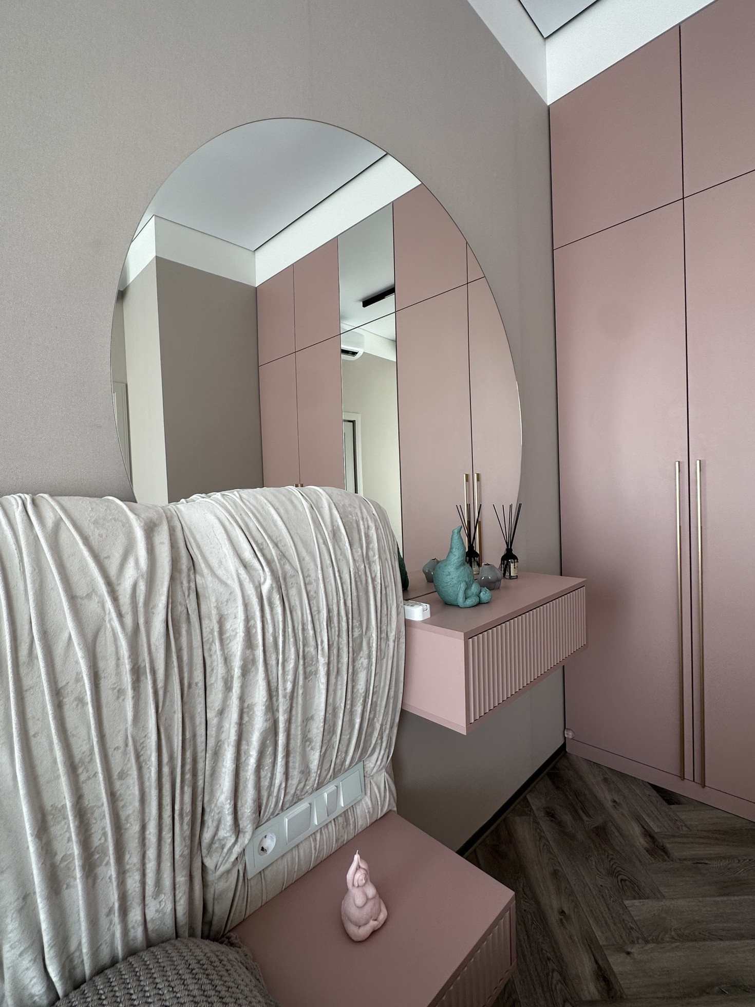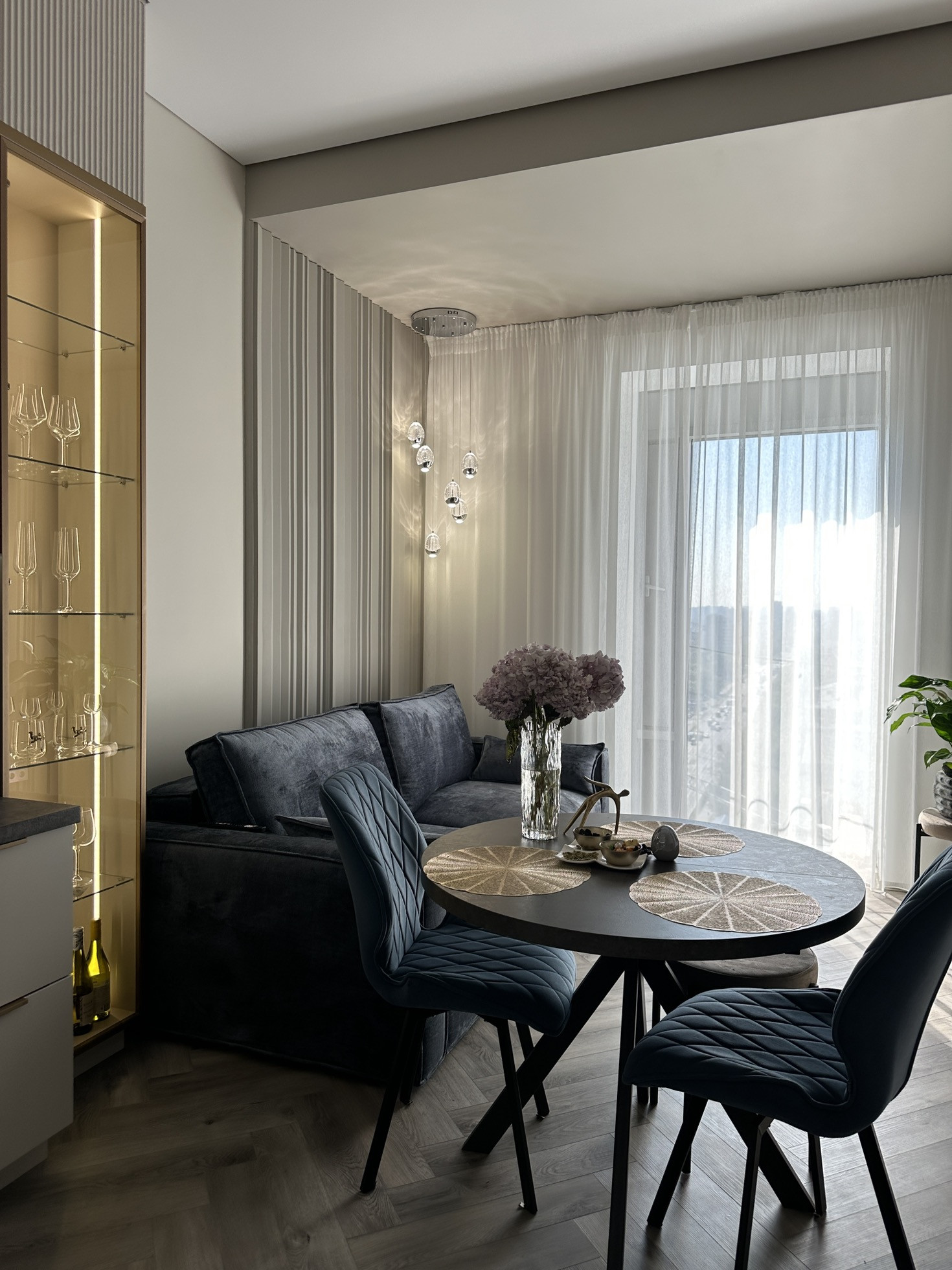 Полностью заменено отопление от застройщика, проведена новая электрика с множеством допников. Мебель заказная МДФ, эмаль.