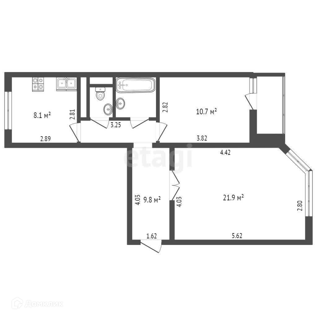 Общая площадь 56.3 м2