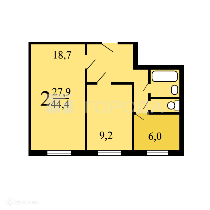 Общая площадь 44.4 м2