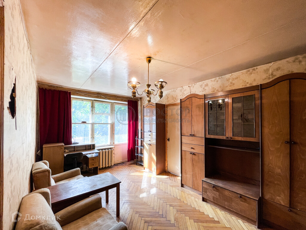 Квартира со старым ремонтом с частичной меблировкой, окна выходят во двор на противоположную сторону от ЖД путей. Тихие спокойные соседи, чистый подъезд.