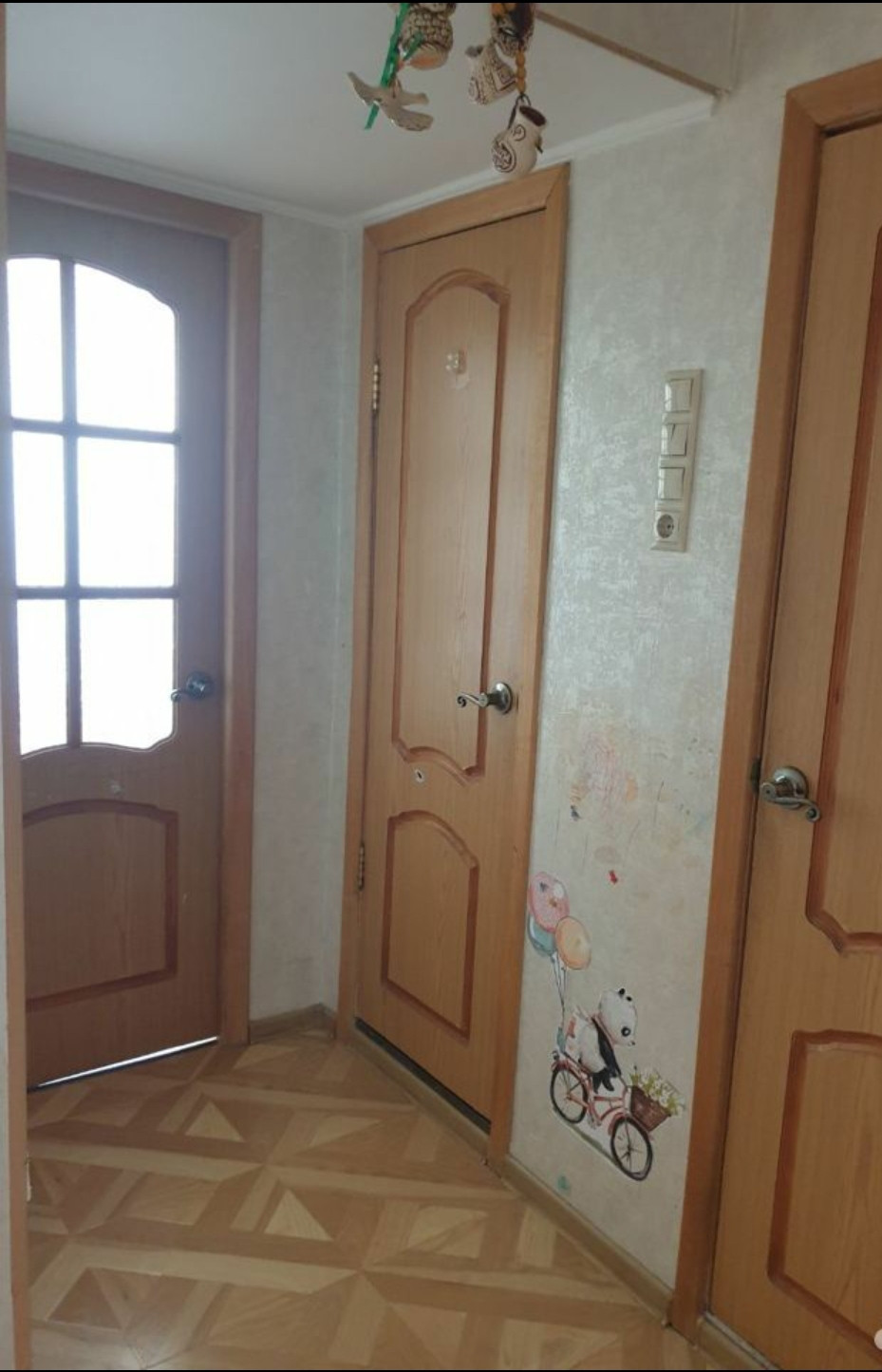 Чистая светлая квартира, требуется переклейка обоев (стены выровнены) и, по желанию, замена межкомнатных дверей.