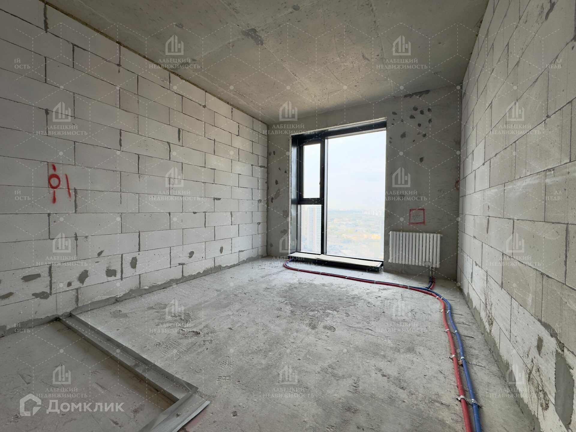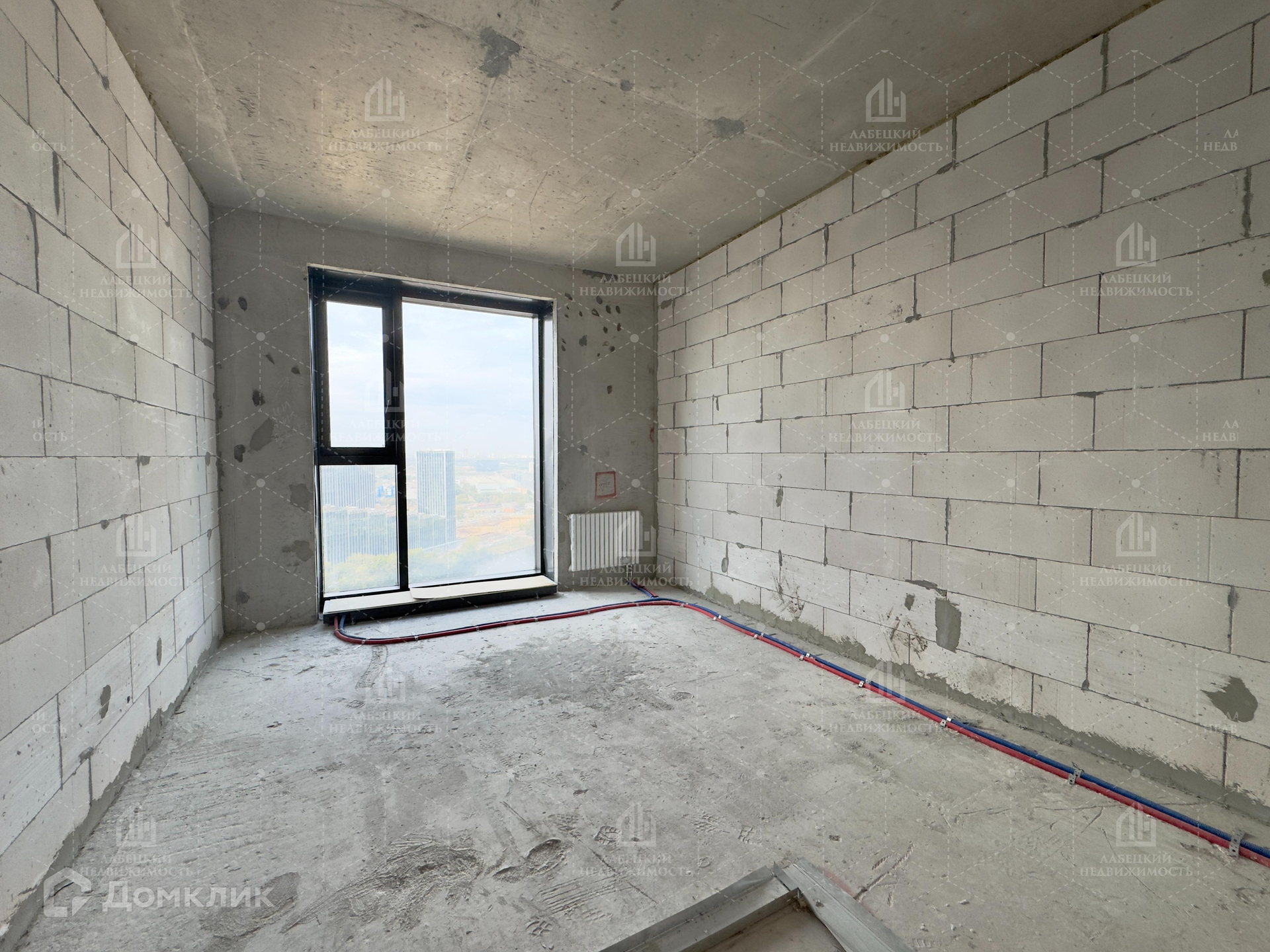 На высоком 28 этаже с красивым видом из окна.