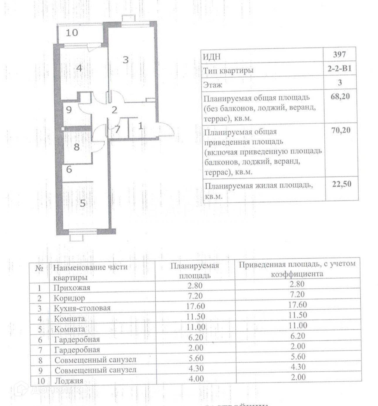 Общая площадь 68.2 м2