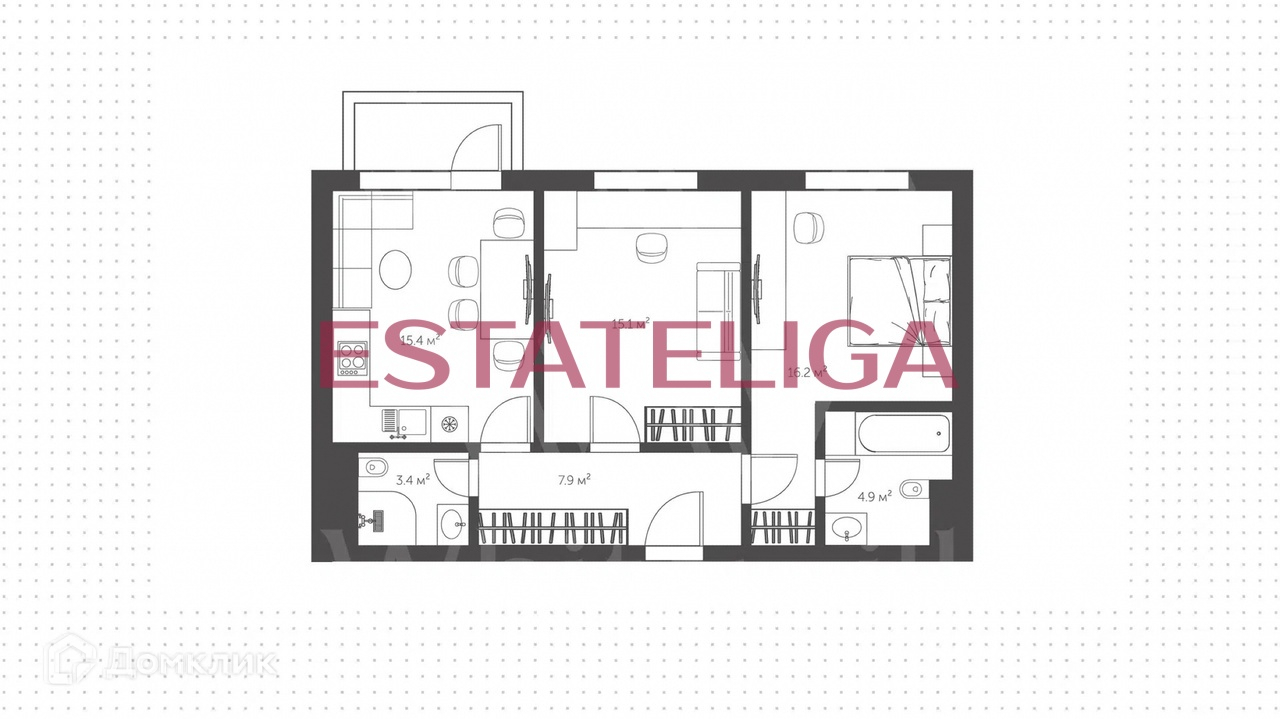 Общая площадь 63 м2