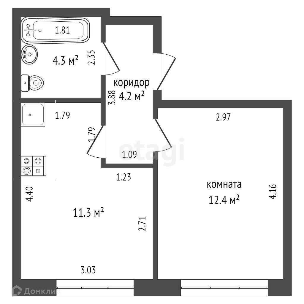 Общая площадь 33 м2