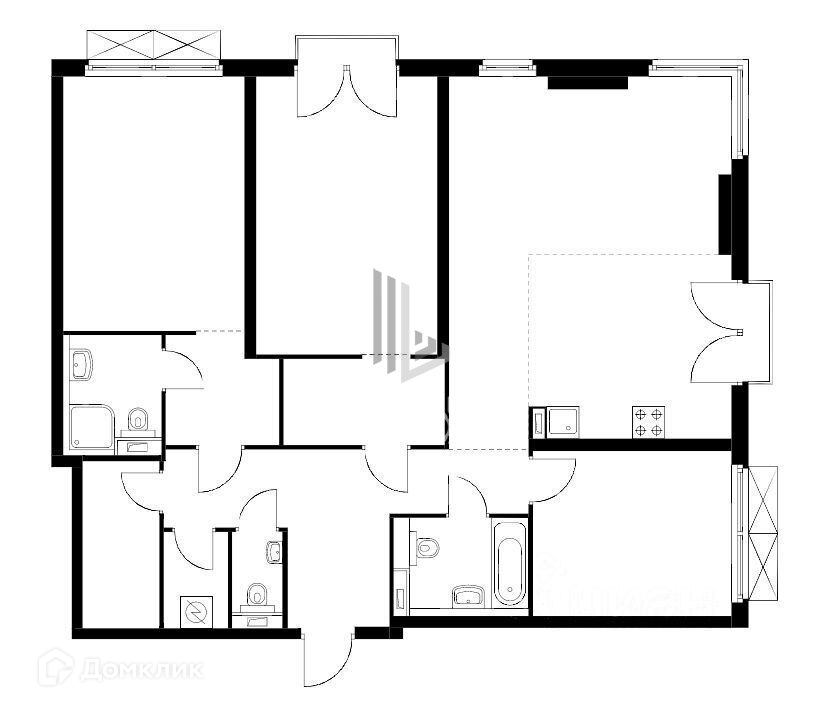 Площадь квартиры позволяет распланировать пространство на Ваше усмотрение и воплотить в жизнь Ваши дизайнерские идеи. По предварительной планировке можно разделить на 3 комнаты, просторную кухню-гостиную, гардеробную, совмещенный и гостевой санузлы и холл.