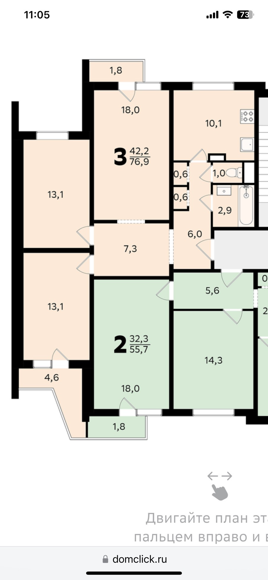 Общая площадь 75 м2