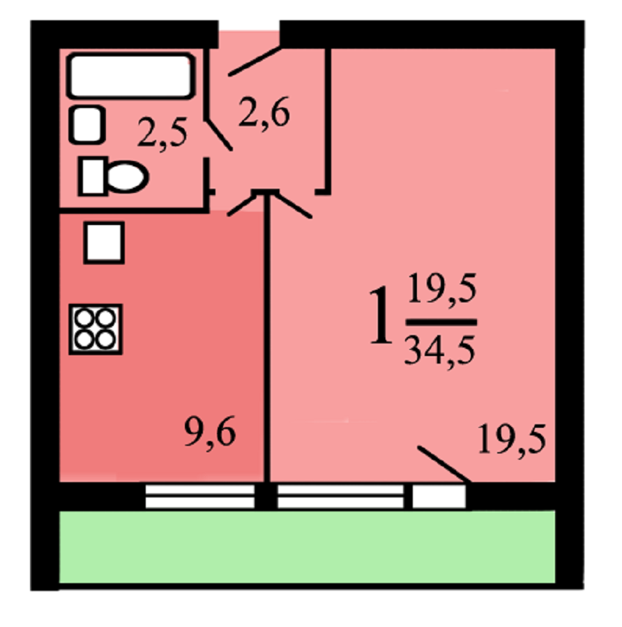 Общая площадь 34 м2