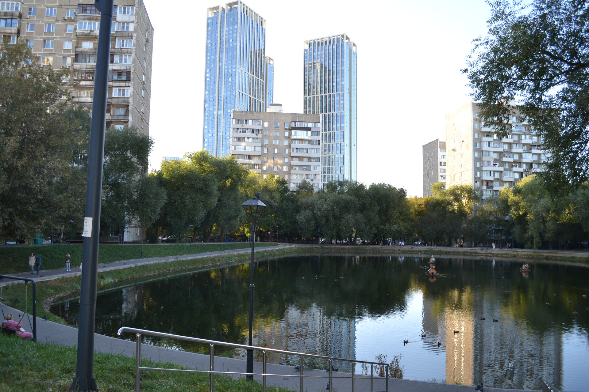 Дом расположен в небольшом отдалении от дорог в зеленой благоустроенной зоне. Около дома очаровательный пруд с прогулочной зоной, которая оснащена разнообразными современными активностями.