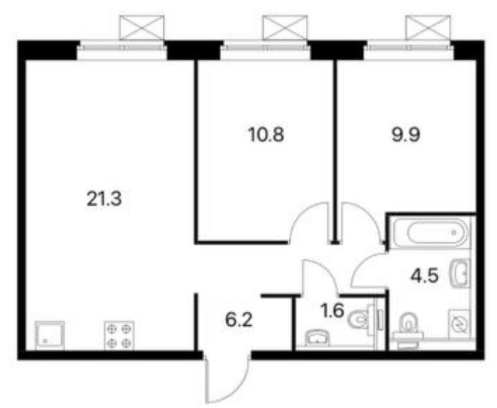 Общая площадь 55 м2