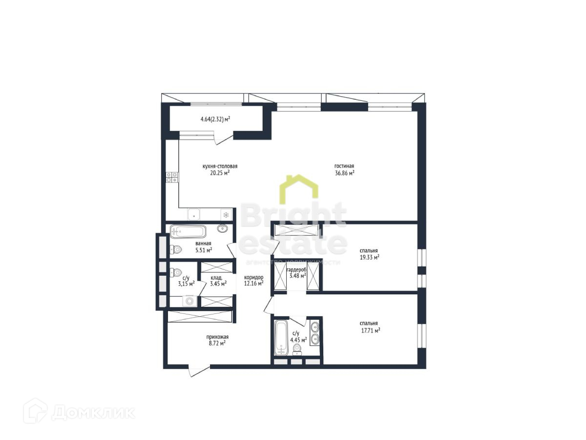 ПЛАНИРОВКА: прихожая, кухня-гостиная, две полноценных мастер-спальни, гардеробная зона и гостевой с/у.