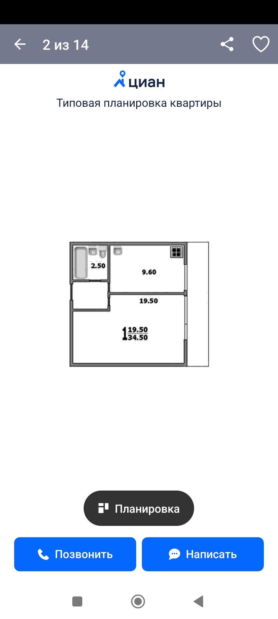 Общая площадь 34.6 м2