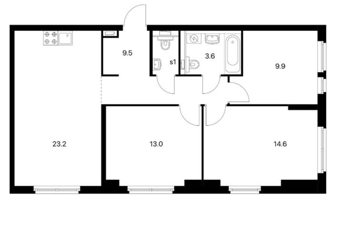 Общая площадь 77 м2