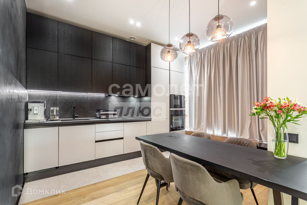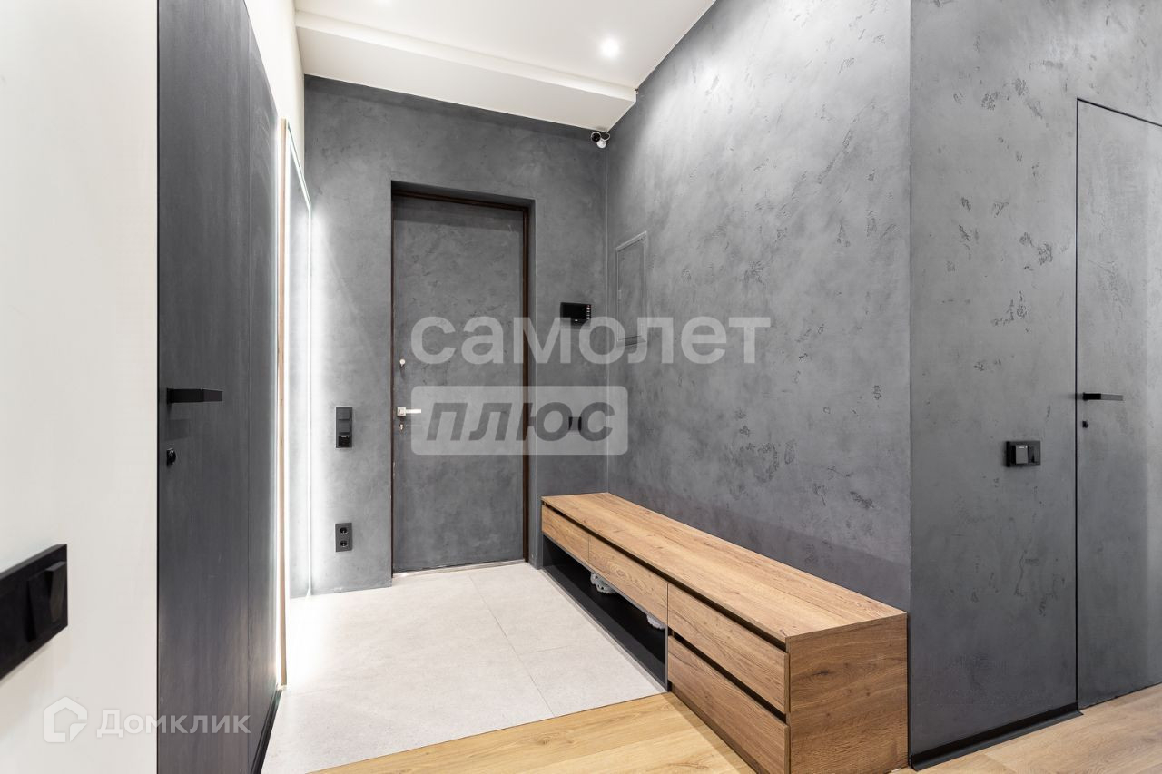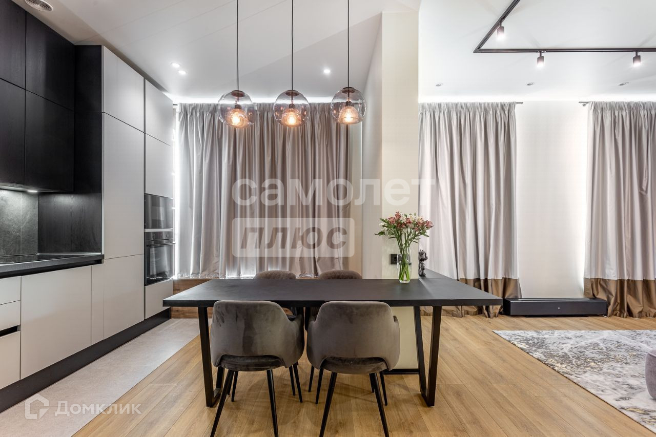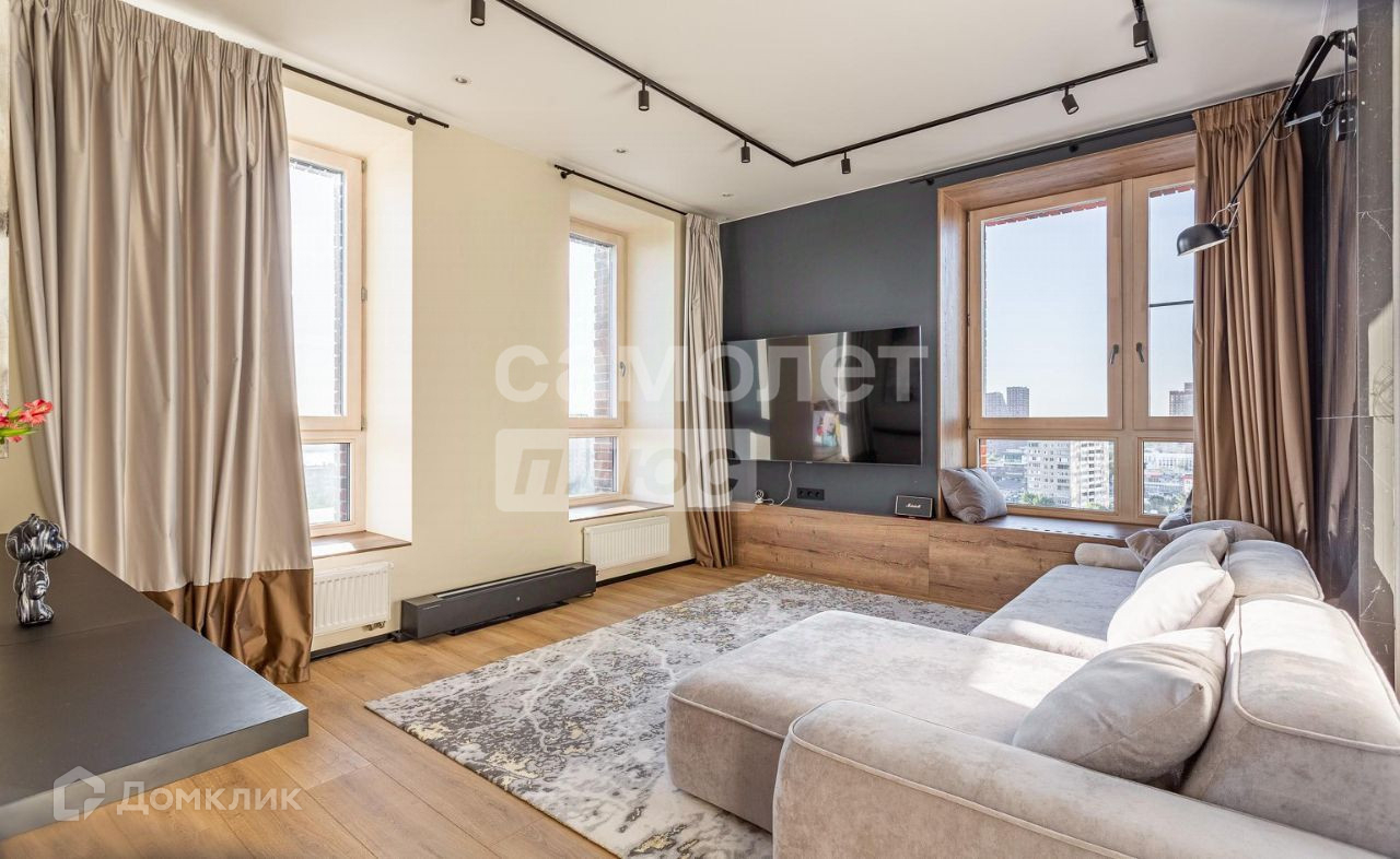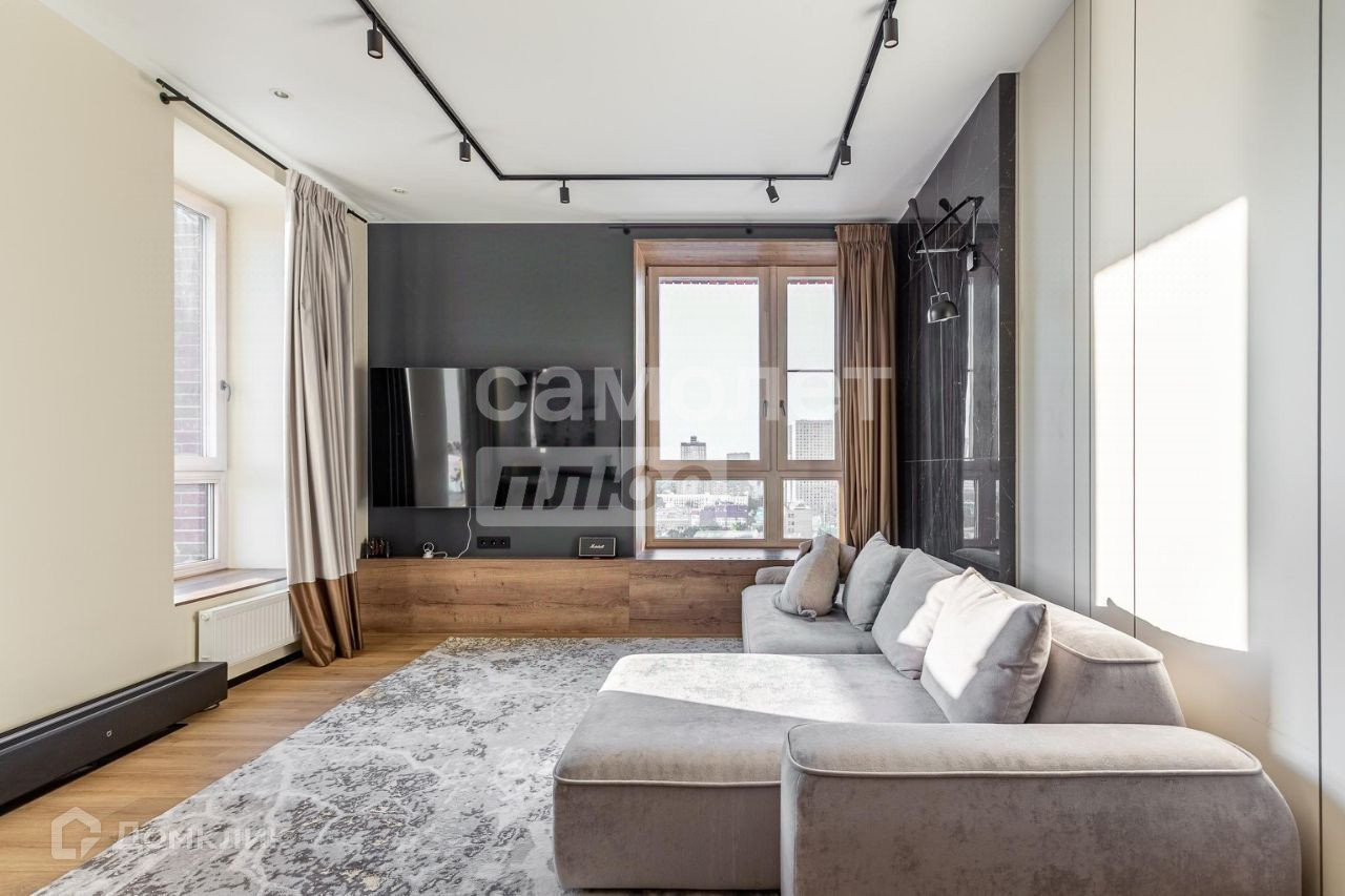 Это угловая квартира с шестью окнами, выходящими на две стороны. В ней предусмотрены два санузла, две спальни и кухня-гостиная. Соседи находятся только с одной стороны. Дизайн квартиры выполнен в современном стиле с использованием качественных материалв. Также установлена централизованная система кондиционирования и тёплые полы в прихожей, обеих ванных комнатах и кухонной зоне. Благодаря угловому расположению помещение хорошо проветривается.