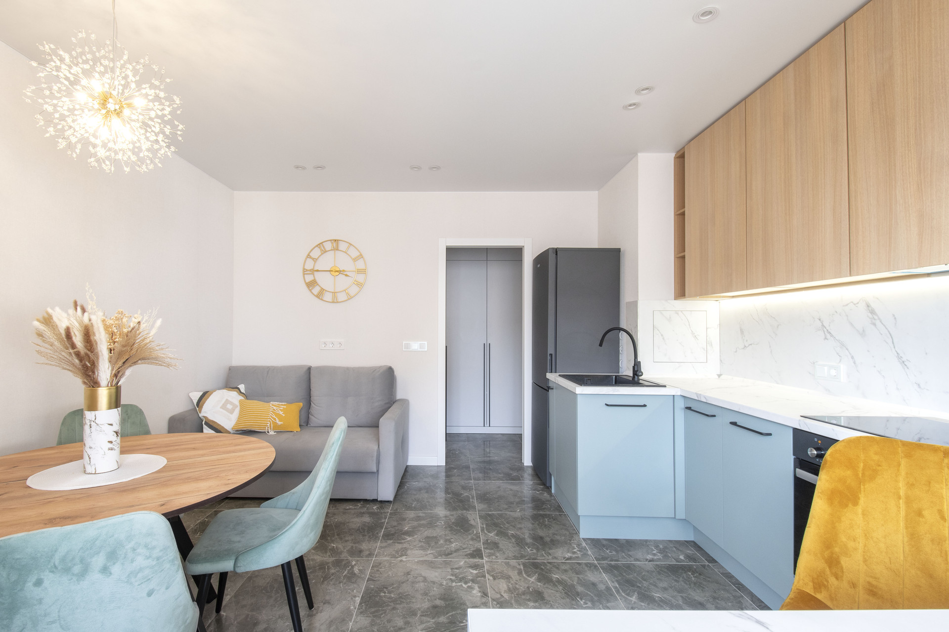 Просторная квартира с эргономичной планировкой: отдельная кухня гостиная с обеденной зоной и уютная спальня, большая гардеробная.