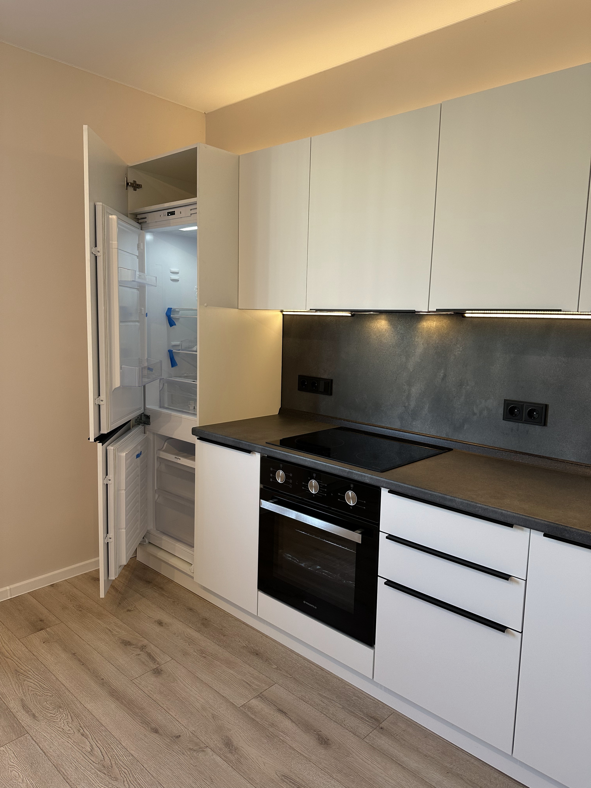 Квартира продается с новым ремонтом и новой встроенной техникой (холодильник, духовой шкаф, варочная панель, вытяжка, посудомоечная машина, водонагреватель, кондиционеры). Все входит в стоимость.