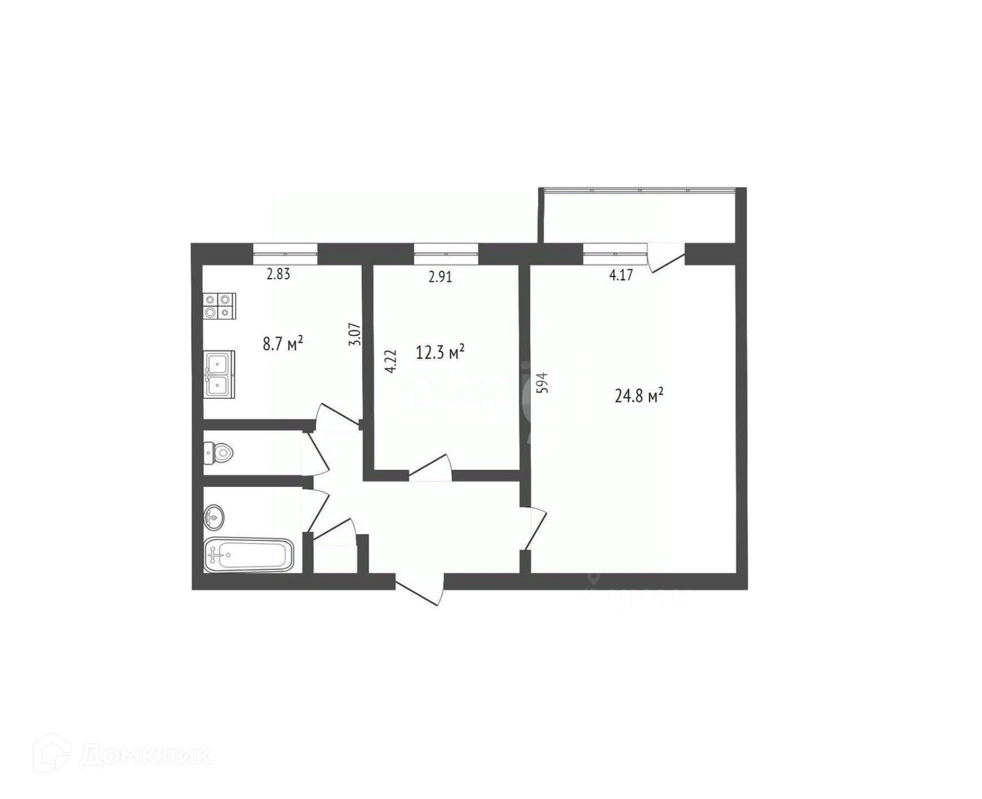 2 изолированные комнаты 25 кв. м и 12 кв. м
