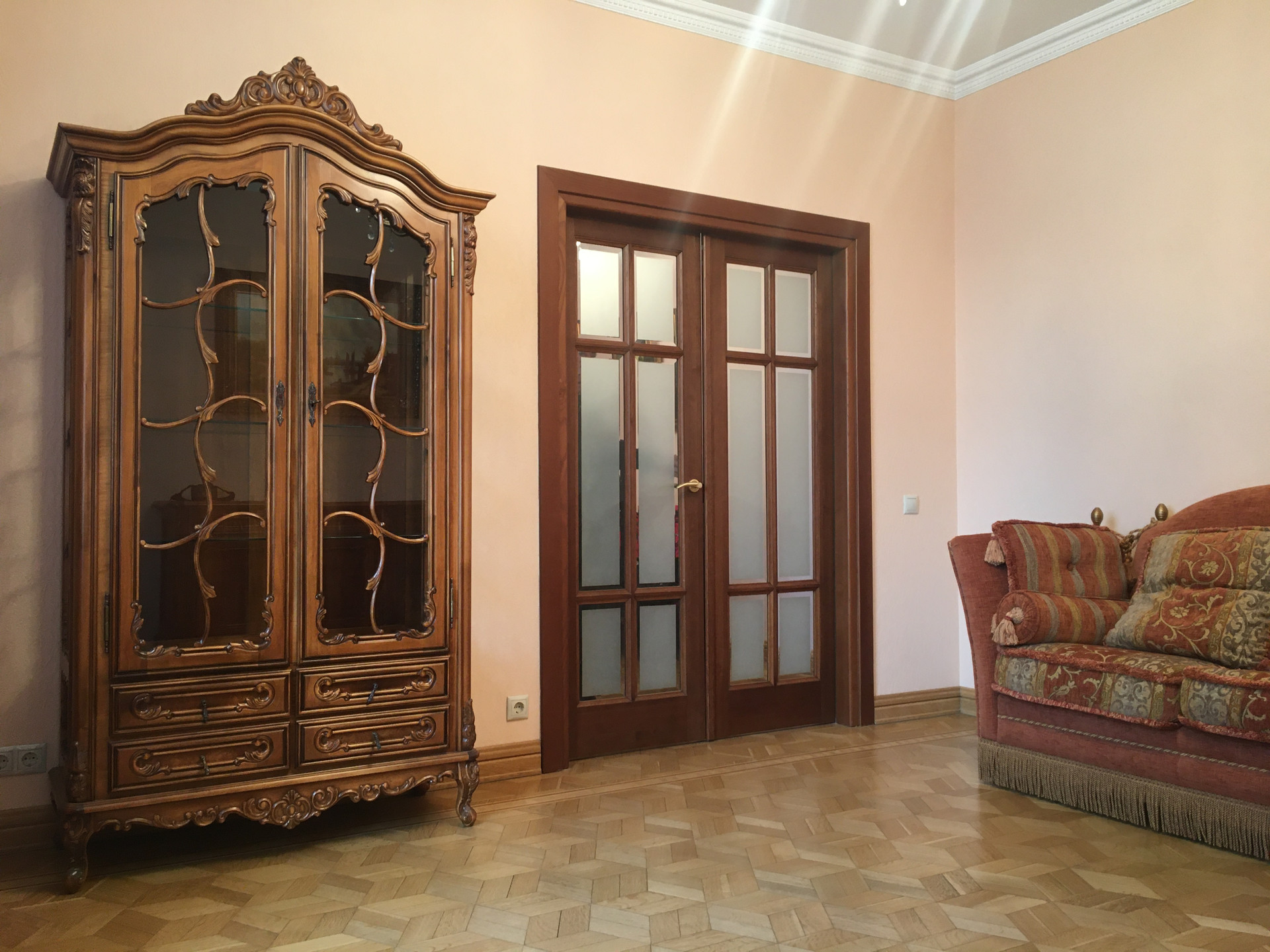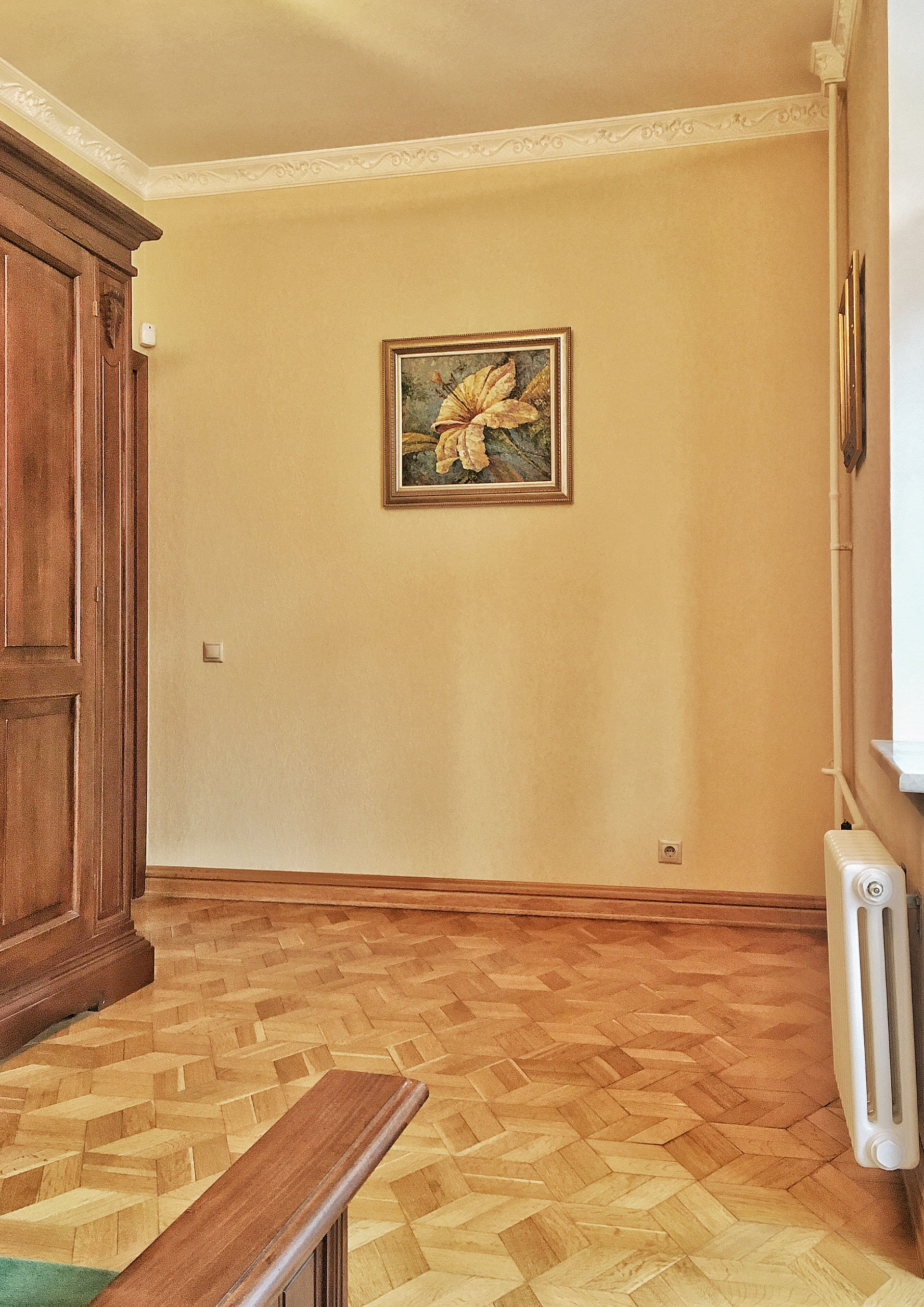 Дубовый паркет. Большой  совмещенный санузел произведет на вас приятное впечатление.