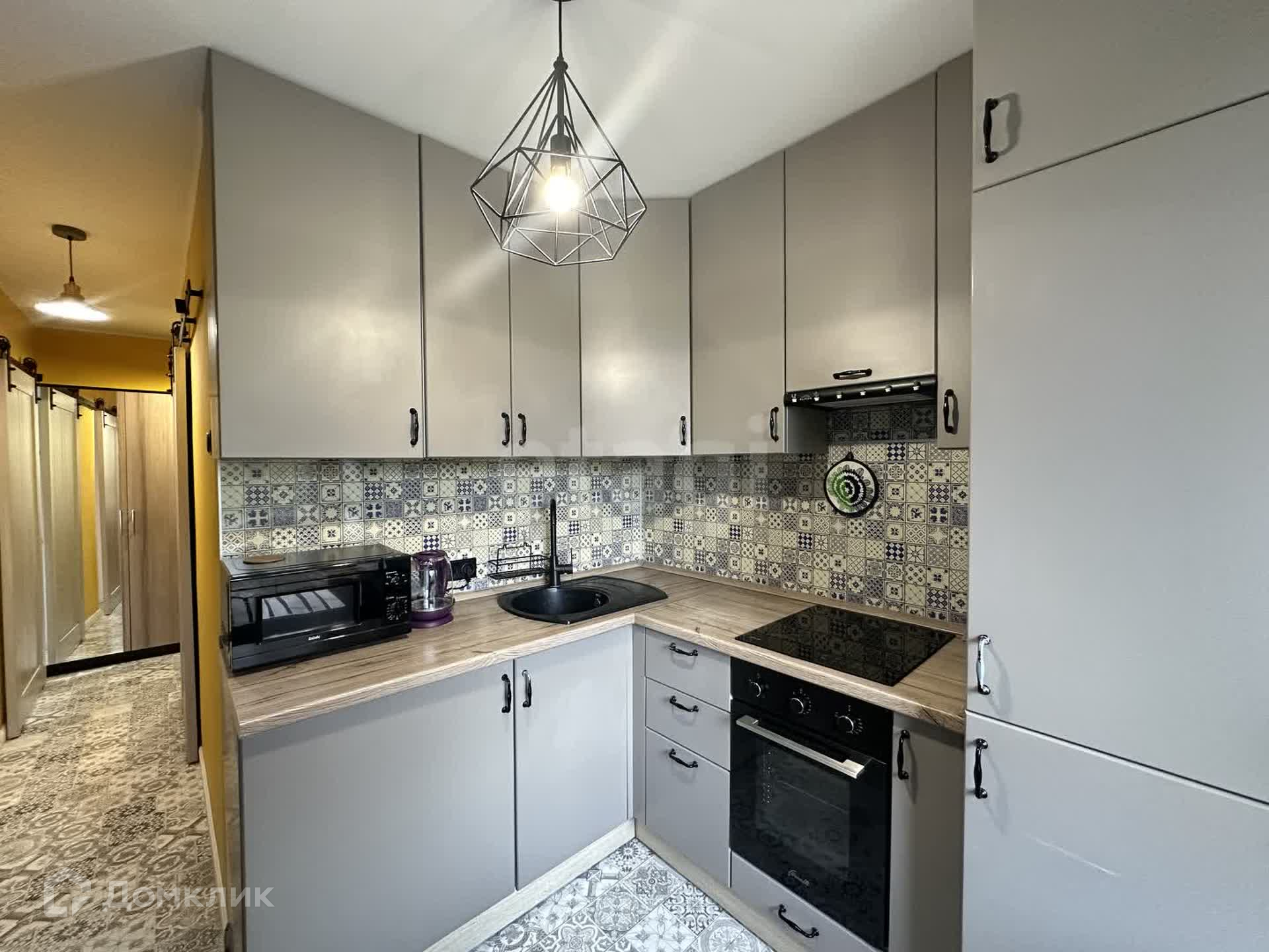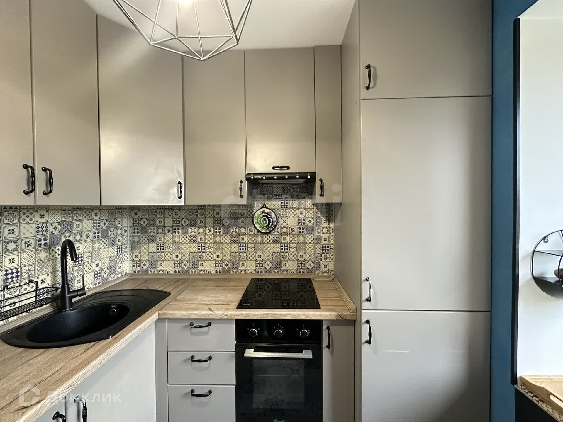 - Кухня встроенная полностью под потолок. Холодильник также встроенный. Вся техника прекрасно работает.