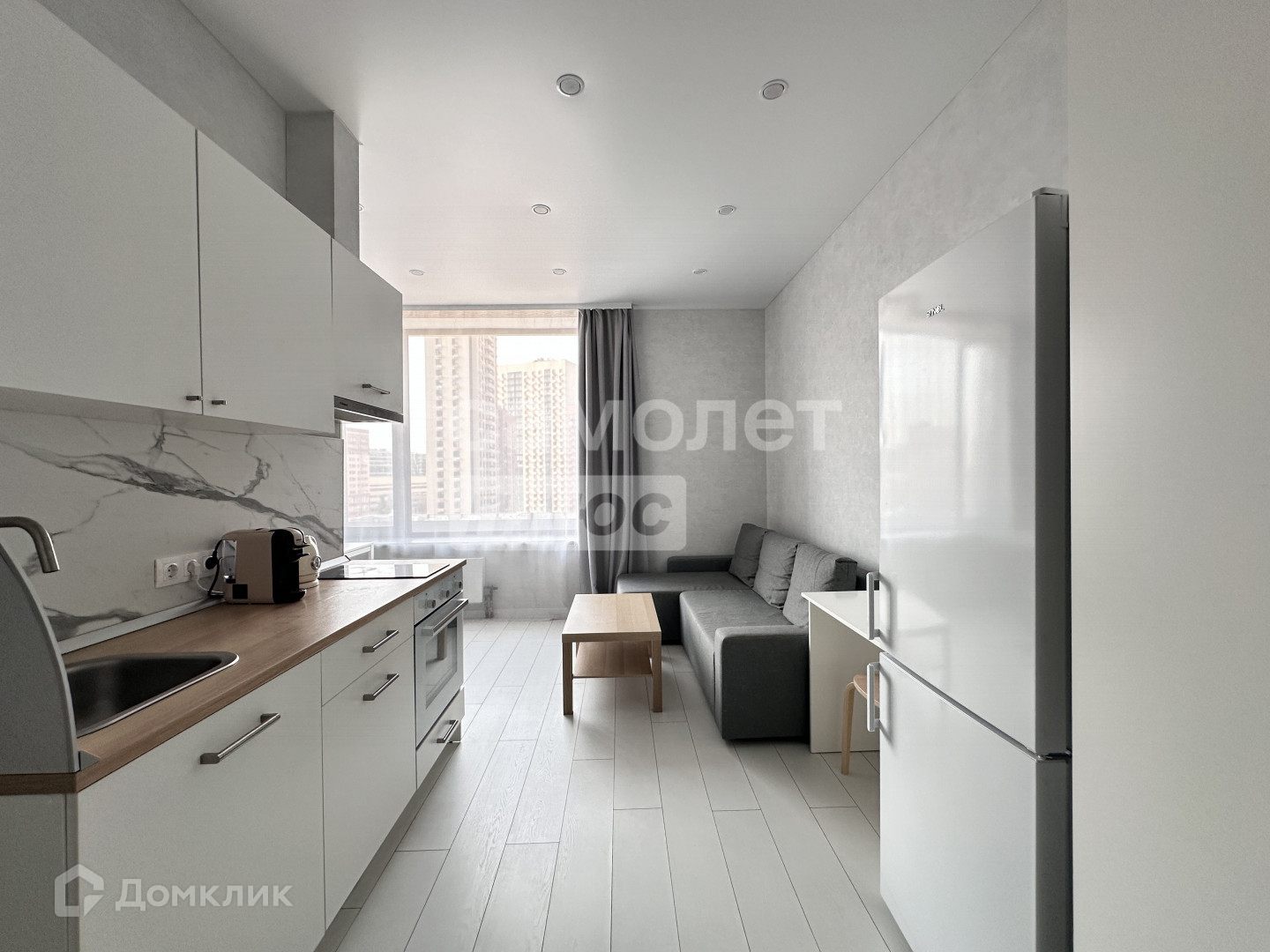 Квартира располагается на комфортном 6-ом этаже. вид из окон в сторону улицы, дневного света в квартире много за счет огромного окна.