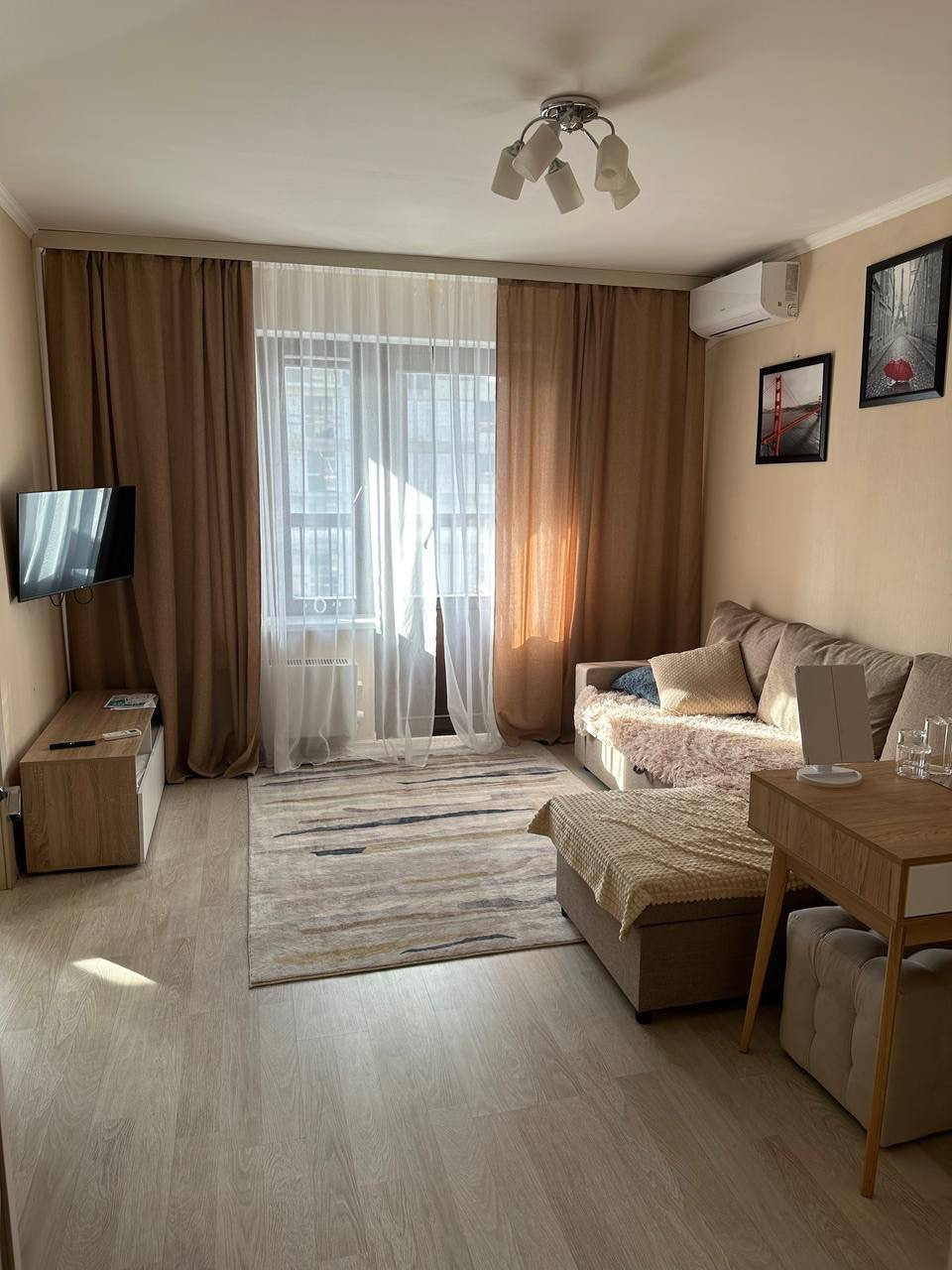 - гостиная (диван, компьютерный стол и компьютерный стул)