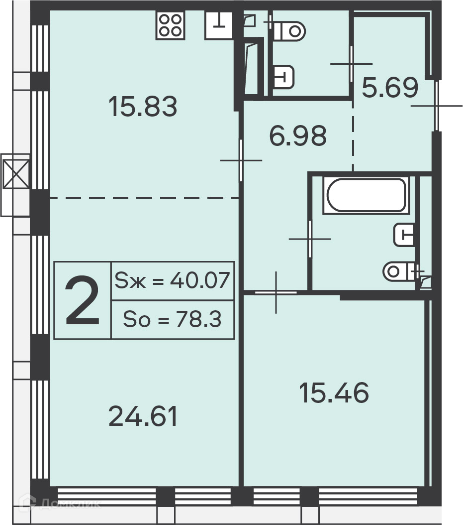 Общая площадь 78.3 м2