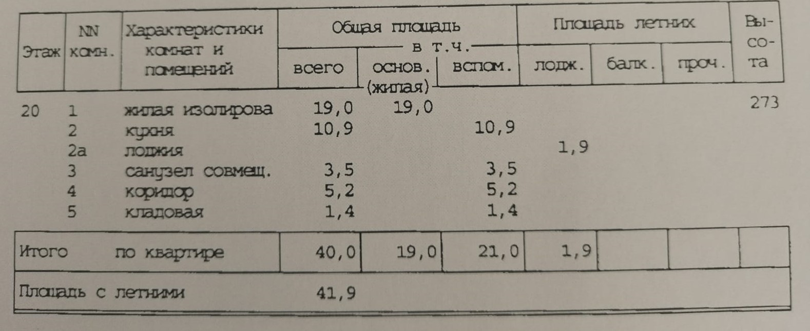Общая площадь 40 м2