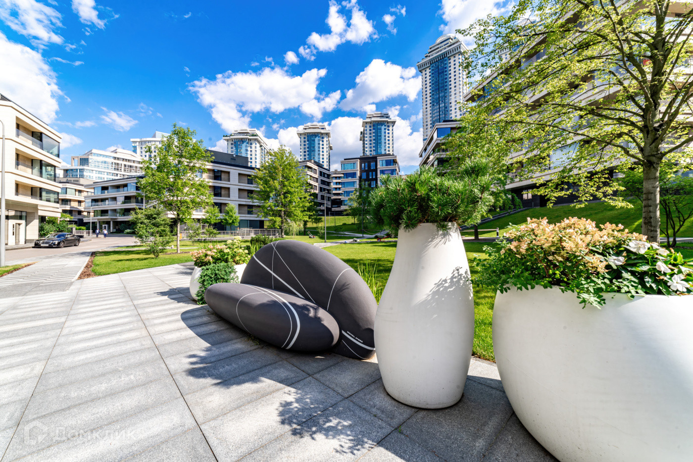На территории комплекса есть собственный парк с прудом. Его благоустройством занималась компания Gillespies, а озеленением — команда Imperial Garden.