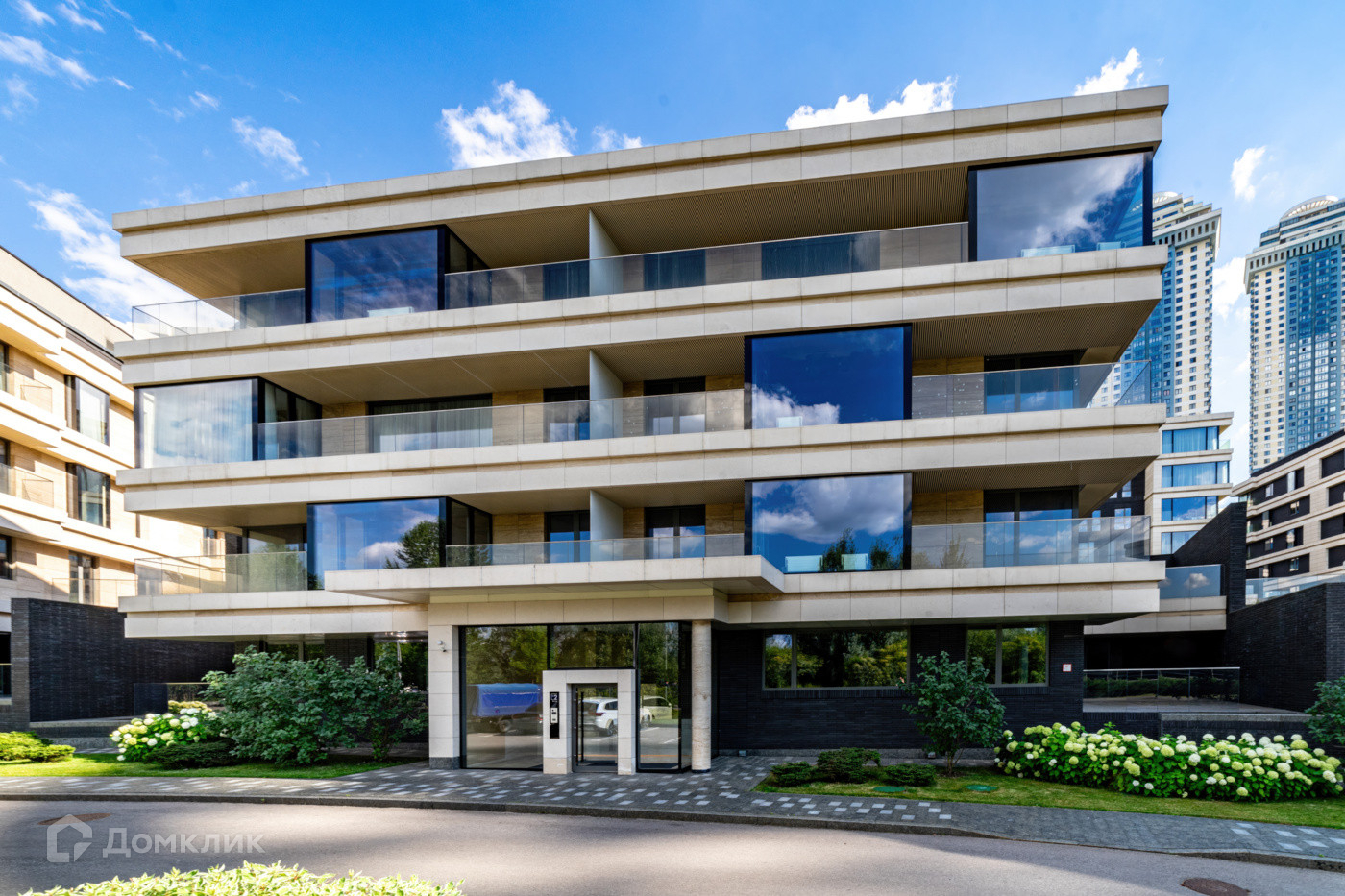 Внутри проведена дизайнерская отделка, современный стиль которой является дополнением к экстравагантному внешнему облику новостройки.