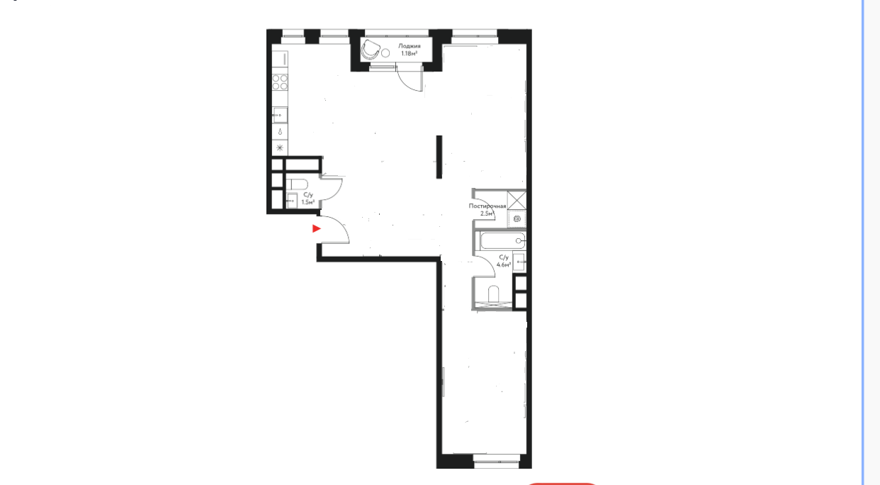 Балкон, лоджия 1 балкон
