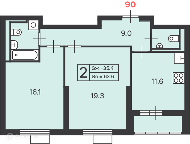 Общая площадь 63.6 м2