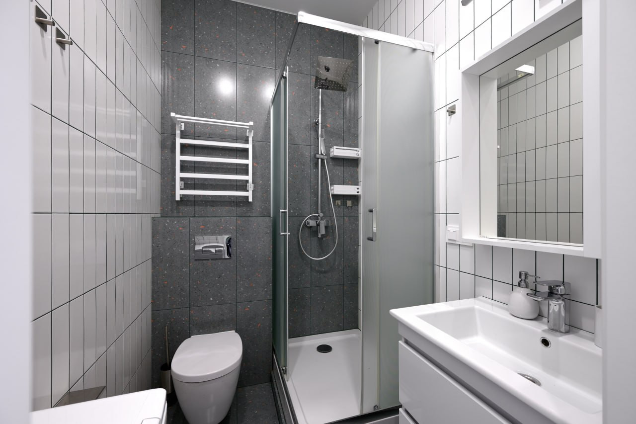 Ремонт выполнен по профессиональному дизайн-проекту с соблюдением всех строительных норм. Применялись исключительно качественные материалы. Важные технические решения, такие как шумоизоляция и гидроизоляция, обеспечивают комфорт и долговечность. Установлен кондиционер для поддержания идеального микроклимата в любое время года.