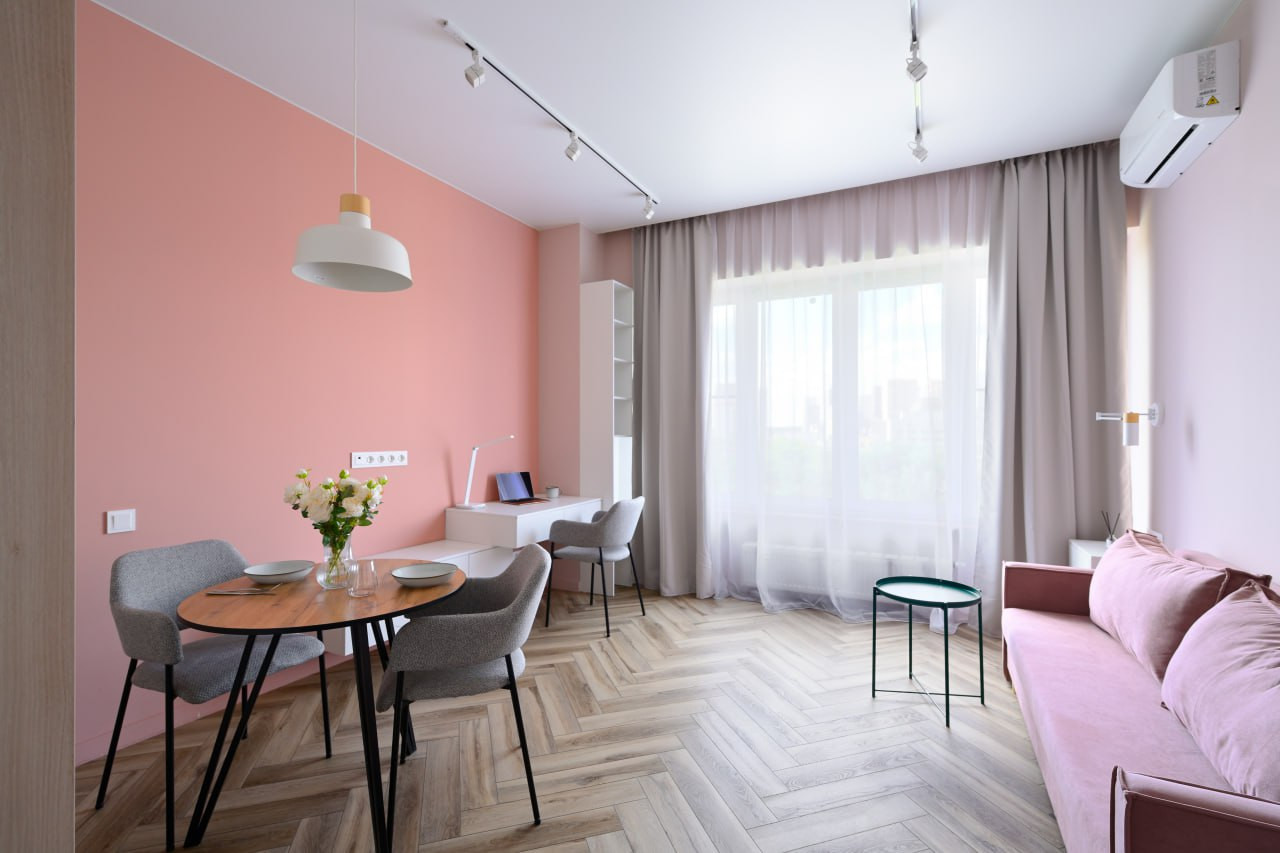 Жилое пространство студии — это уютный уголок, продуманный до мелочей для максимального комфорта. Здесь предусмотрено рабочее место, которое идеально подходит для удаленной работы или учебы. Просторное окно наполняет помещение естественным светом. Это идеальное место для отдыха, работы и творчества.