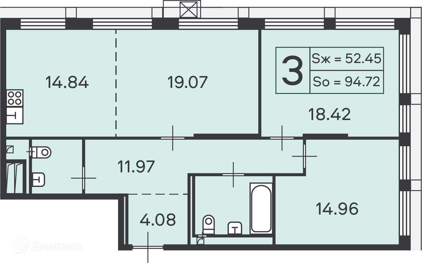 Общая площадь 94.72 м2