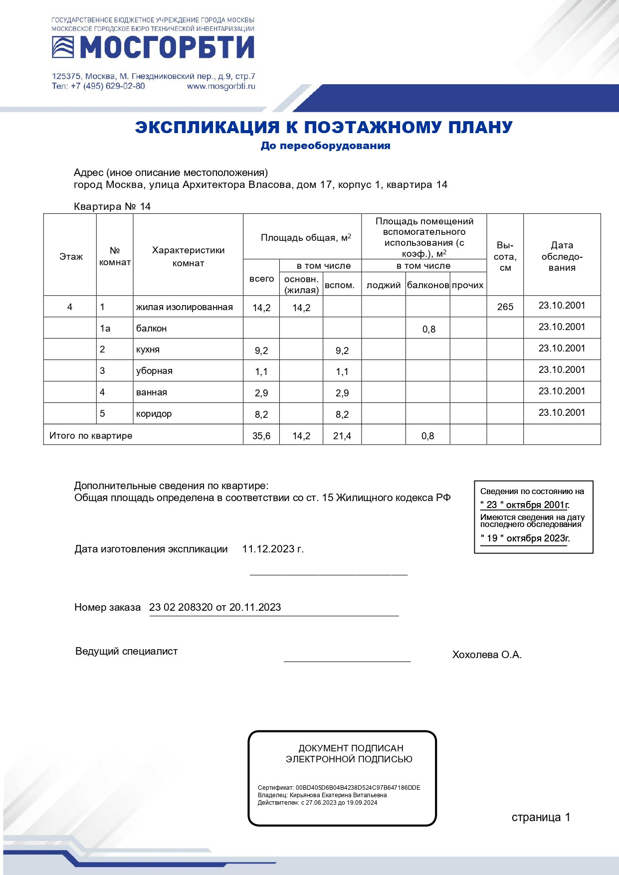 1-комнатная квартира, 35.3 м2, этаж 4 / 17, на продажу в Москве, улица Архитектора Власова, 17к1