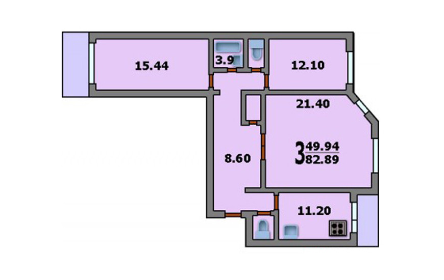Количество комнат 3