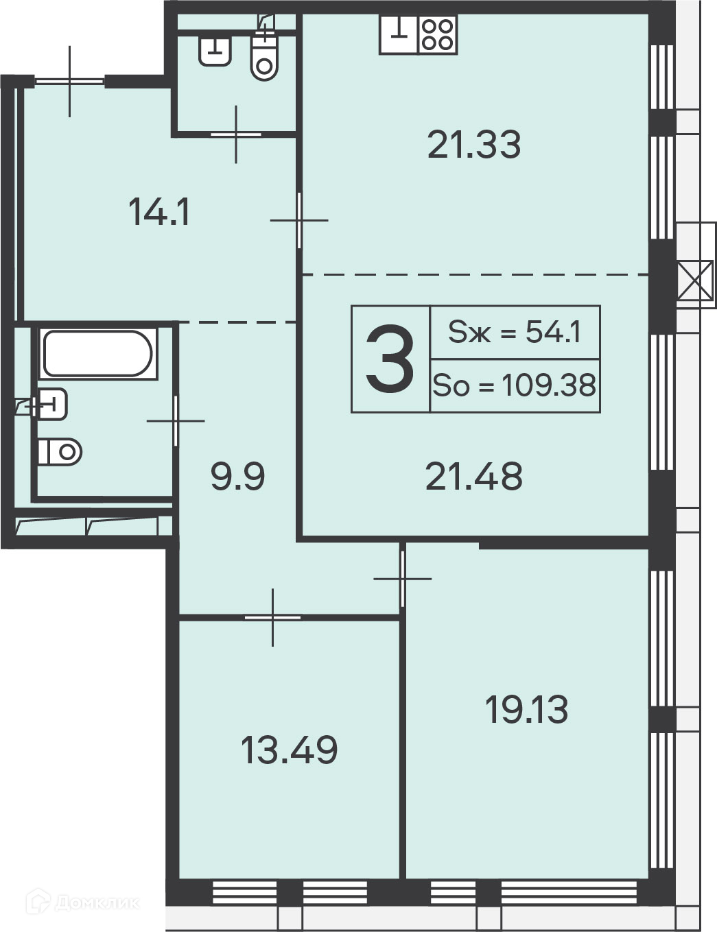 Общая площадь 109.38 м2