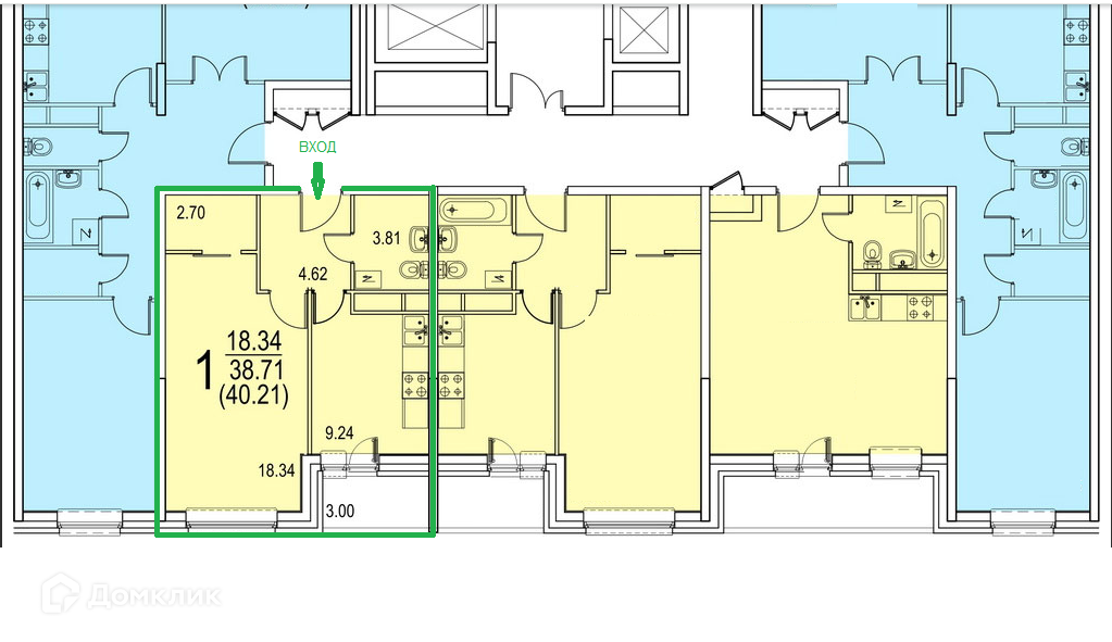 Общая площадь 38.3 м2
