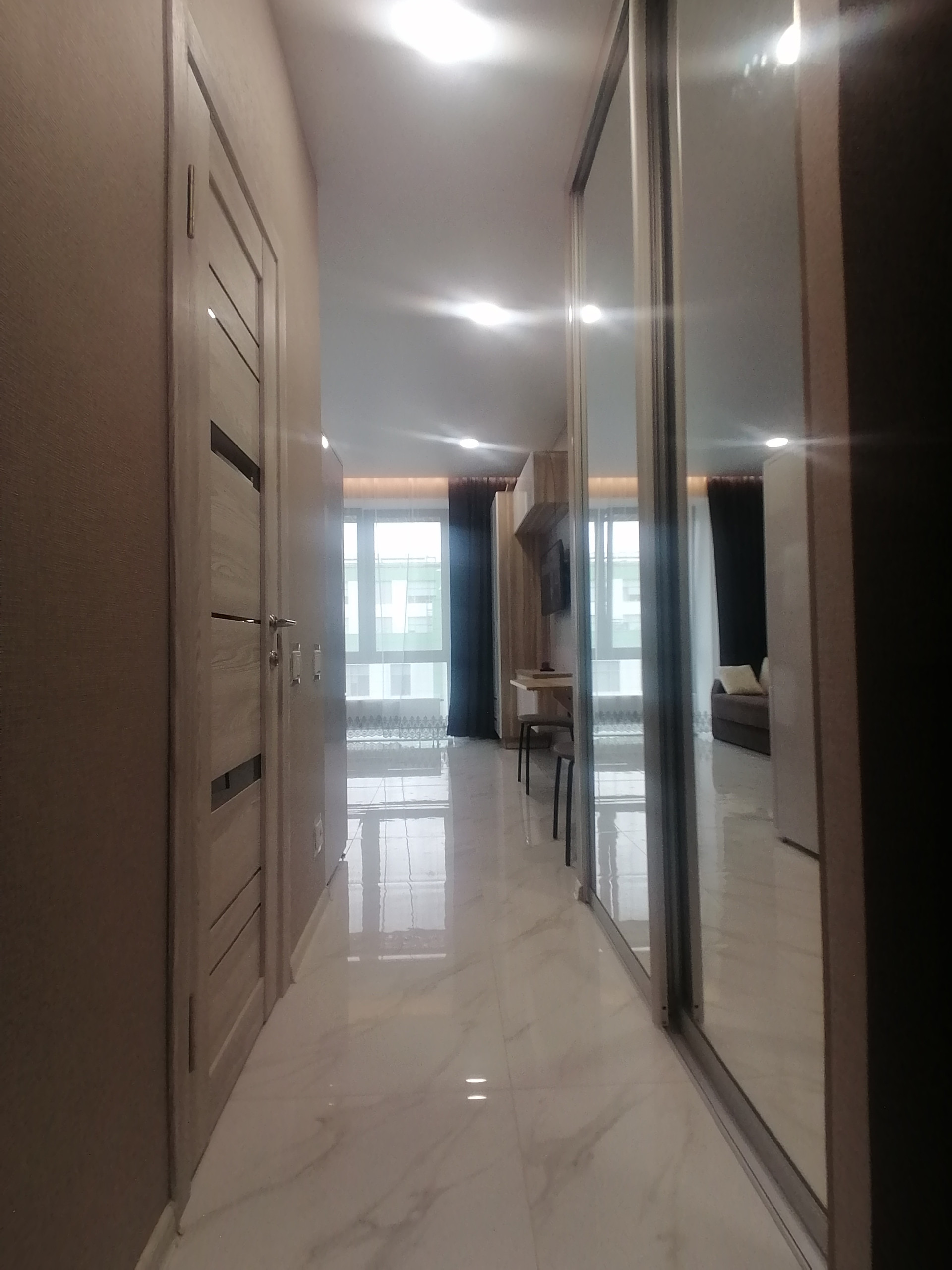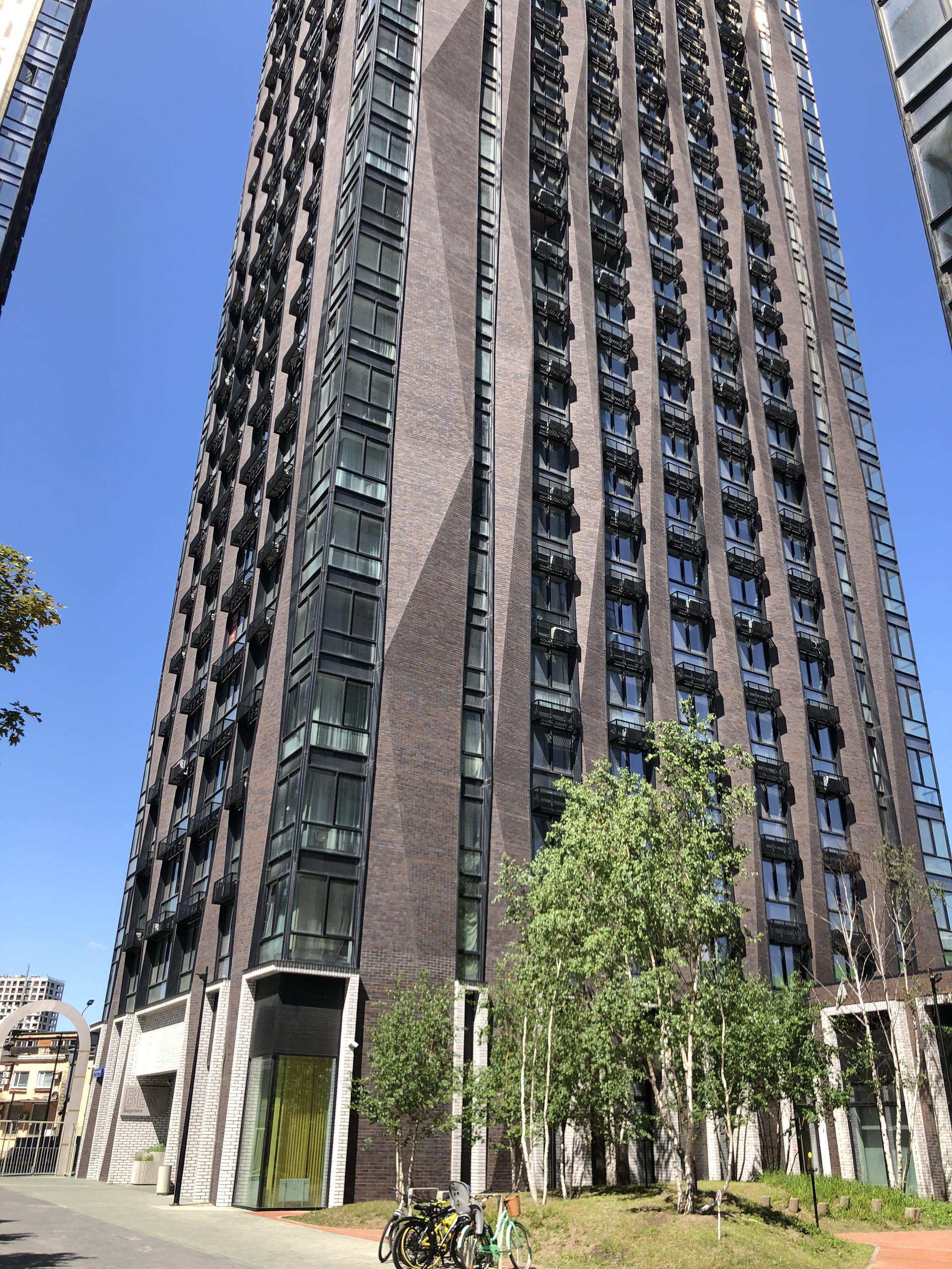 В доме чистый, просторный холл, несколько лифтов. Домофон с распознаванием лица, автоматические двери. В лобби находятся консьержи, на территории охрана. Закрытая территория без машин (парковка подземная)